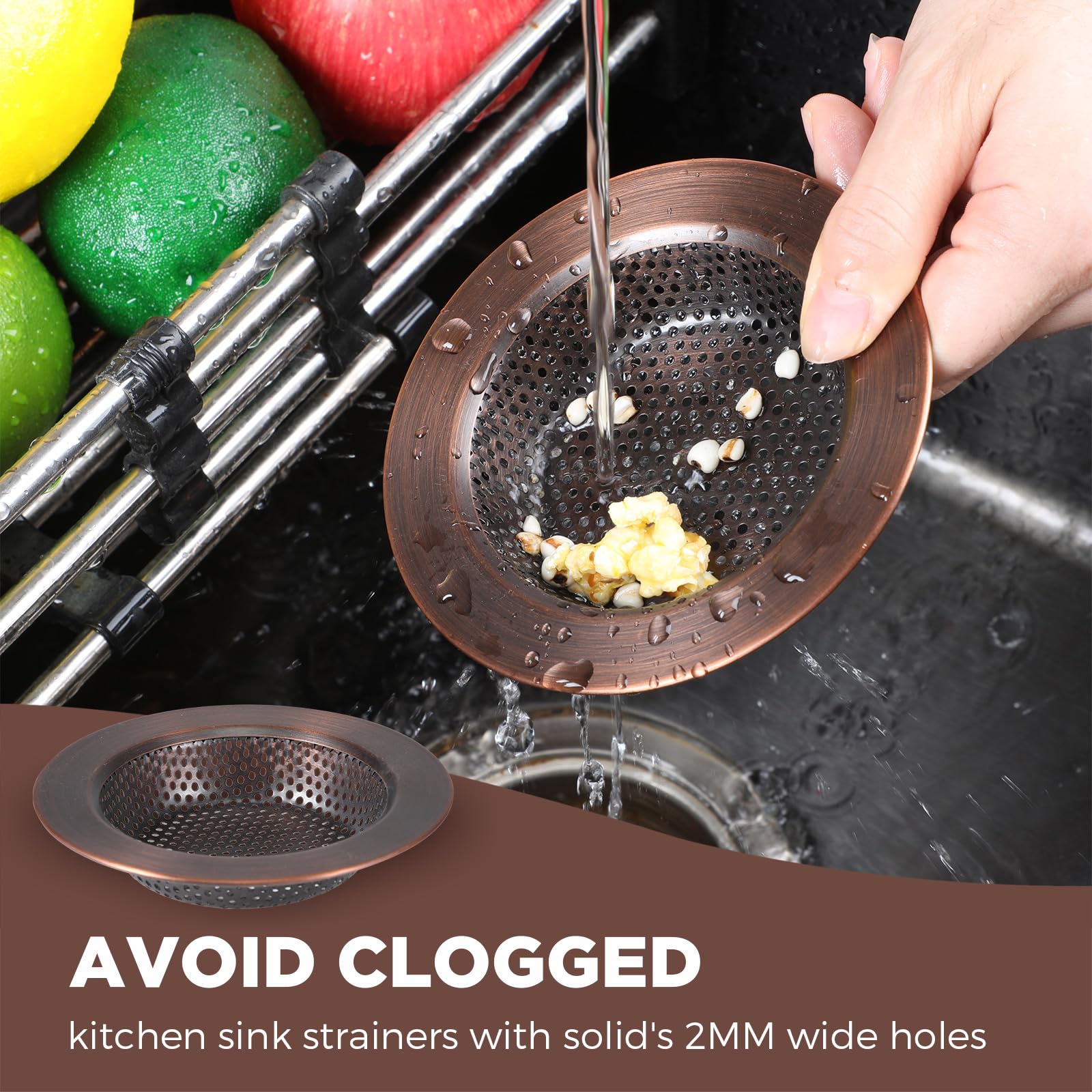 No Need to Call the Plumber: 4.5 inch drain filter strainer with 2 mm dia holes, suitable for sink drains and garbage disposals, it can catch large food particles or utensils that get stuck in the drain, protecting your pipes from breaking or blockage
