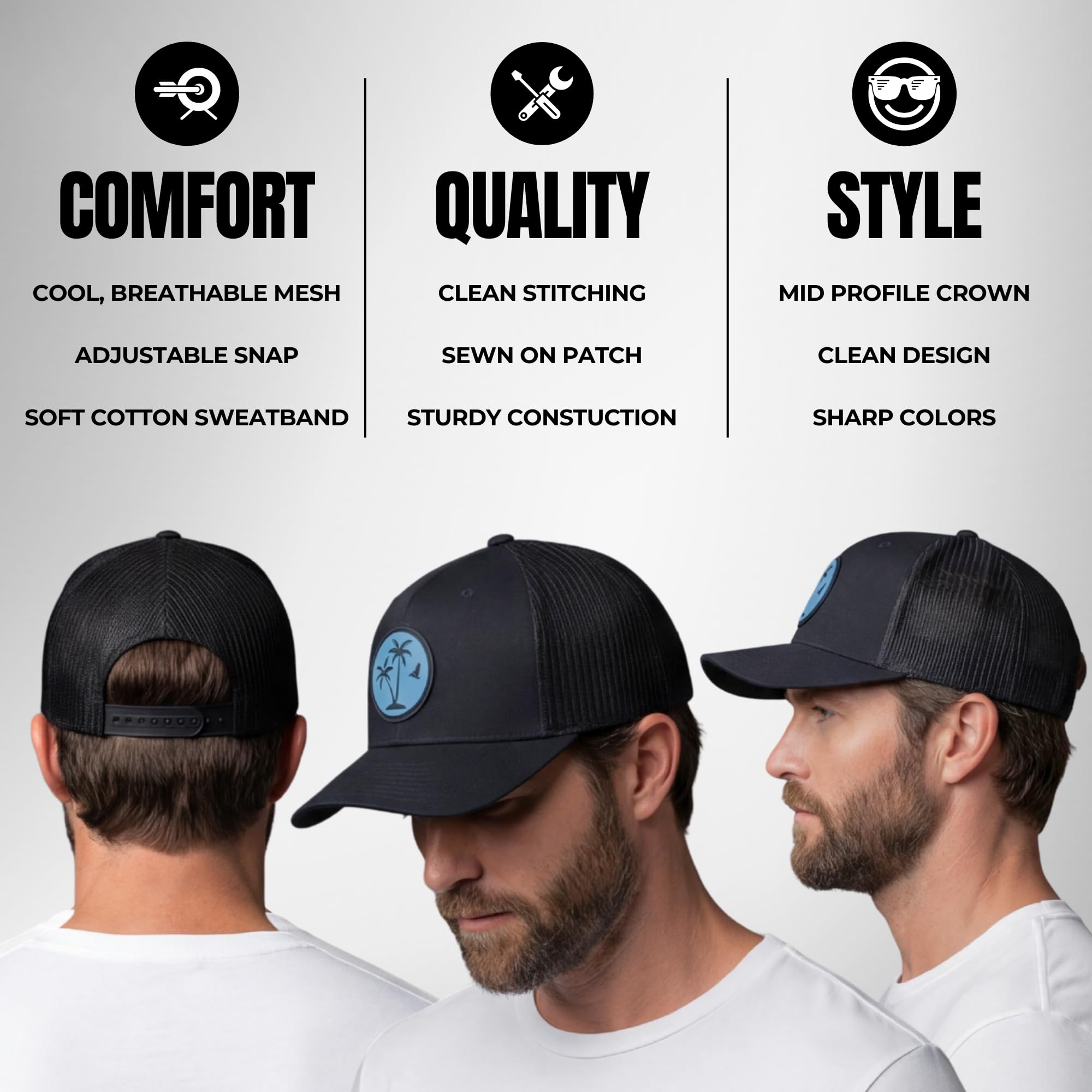 Description Embrace the sun and sand with a hat designed for those who love the beach and coastal adventures. Whether you’re relaxing by the ocean, boating, surfing, or casting a line from the pier, this classic trucker cap delivers breathable comfort and laid-back style. The mesh back keeps air flowing, while the adjustable snapback closure ensures a perfect fit for men and women. Built with quality materials, this durable hat provides reliable sun protection and stands up to salt, sand, and long summer days. From beach vacations and seaside road trips to golf outings, festivals, or just days around town, this versatile cap has you covered for every adventure.