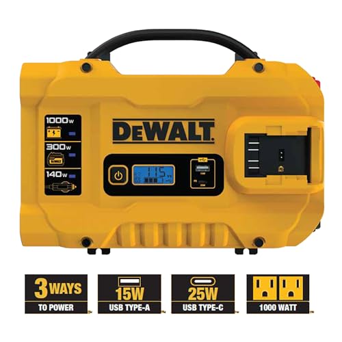 Get portable power 3 ways with the DXAEPIP3W. 1000W power output with direct connection to your vehicle's battery. 300W of output power with connection to a DeWalt 20V XR 5 AH Lithium-Ion Battery (not included) Or, 140 W of output power with connection to DC source This handy unit provides dual AC outlets and 15W USB-Type A/25W USB-Type C ports to charge and power small appliances or devices. Great for job sites, tail gating, camping, power outages and more. Also works with the DeWalt FlexVolt battery on the 20V setting.