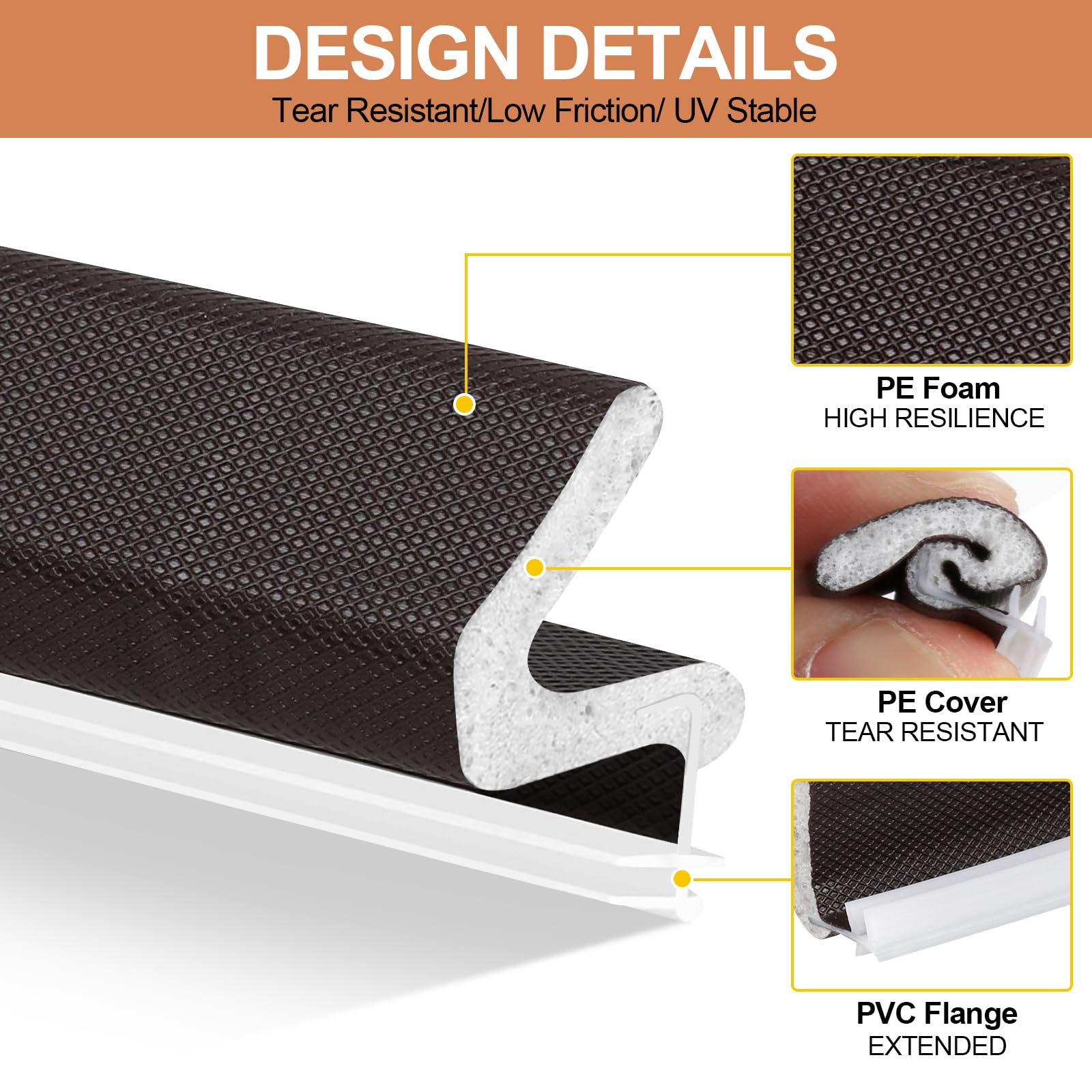 Easy Installation: No adhesive needed—simply measure the gap, cut the weather stripping to the required length, and insert the white plastic flange into the groove for a secure fit