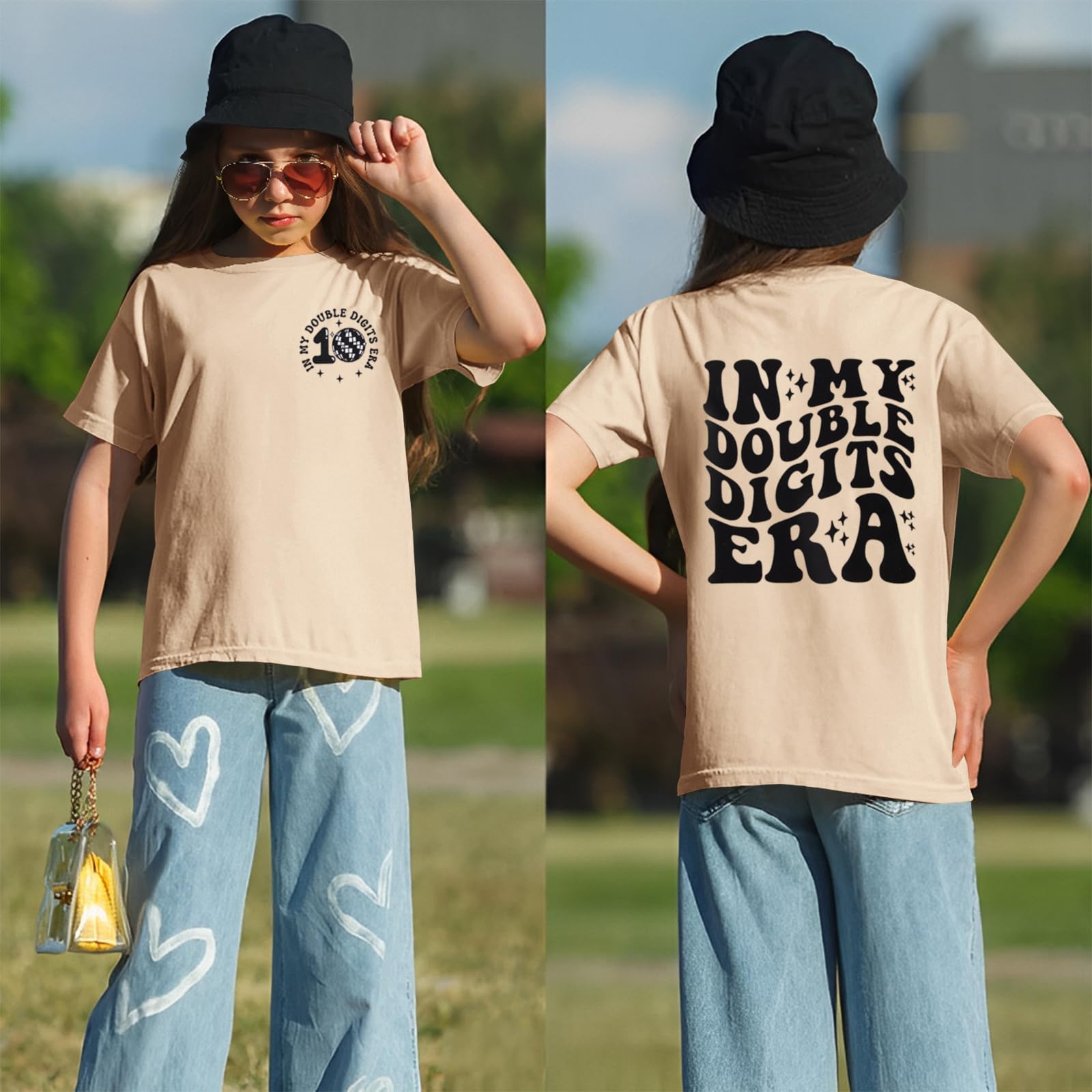 ใDesignใIn my double digits era 10th birthday version colorful groovy retro double-sided printing design, funny birthday gifts for 10 year old girls, makes the perfect 10th bday gift idea for kids. Girls ten b-day party tee tops, age 10 girls short sleeve summer clothes.