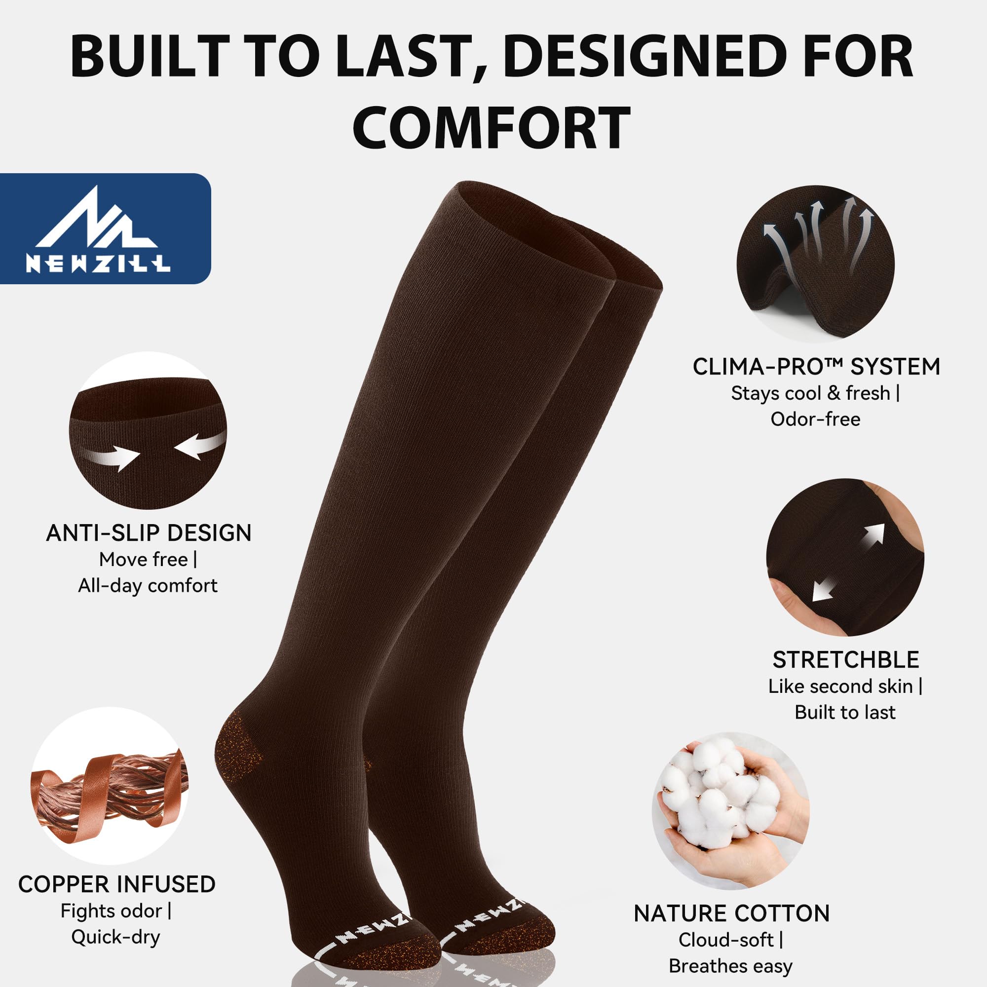 【COMFORTABLE & STYLISH】Newzill knee high dress compression socks are made of 60% Cotton, let your feet stay comfortable and dry in a variety of weather settings. Our Dress Socks are great for business casual, office outfit, long hours flight and weekend wear; you'll always look professional and stylish while enjoying the utmost comfort