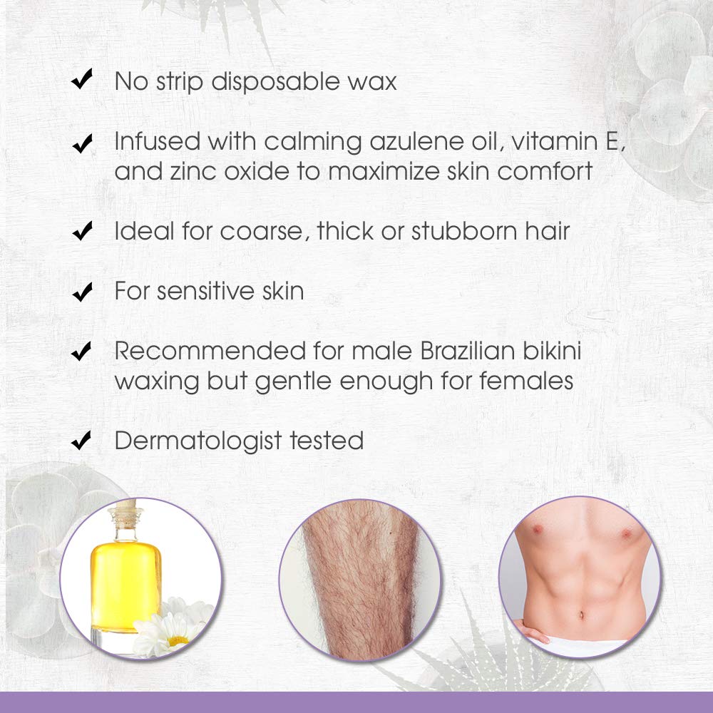 NO-STRIP, DISPOSABLE WAX: Satin Smooth Titanium Blue Thin Film Wax is infused with calming azulene oil, vitamin E and zinc oxide to maximize skin comfort. Formulated for coarse, stubborn hair and sensitive skin. Recommended for male Brazilian bikini waxing. This masculine scented wax maximize hair removal without the need of muslin strips! It’s created for a metro male for a confident, all-over body waxing experience!