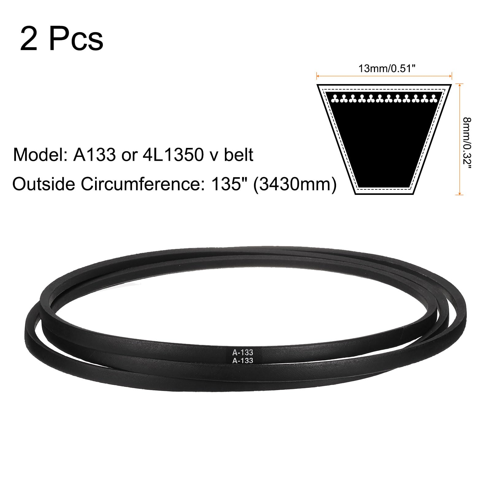 Model: A133 or 4L1350 v belt. Inner Circumference: 133" (3380mm); Outside Circumference: 135" (3430mm).