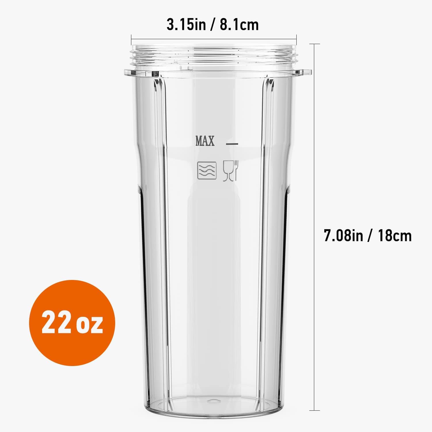 22Oz / 650ml Blender Big Cups Replacement with Drinking lid, Compatible with KOIOS BL219B, BL328B, BL337B, BL309B Smoothies Blender
