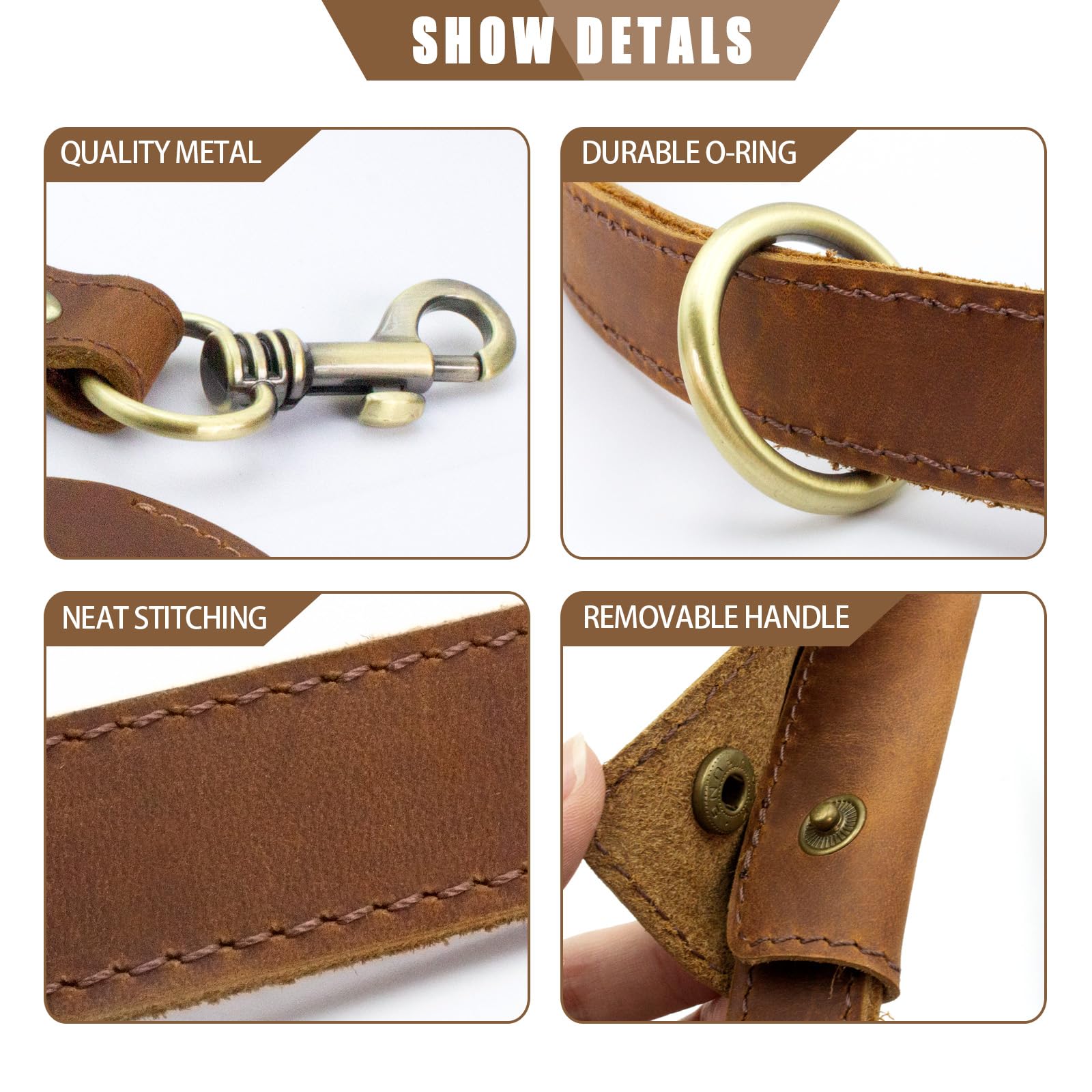 【Durable High-quality Leather】The dog leash for small dogs is made of genuine leather, and design with fine stitching methods, handmade from full genuine leather. 0.85in width, 0.15in Thickness and tight sewing provide maximum durability and last. Great for large, medium, and even some small breeds of dogs cats or other small animals.