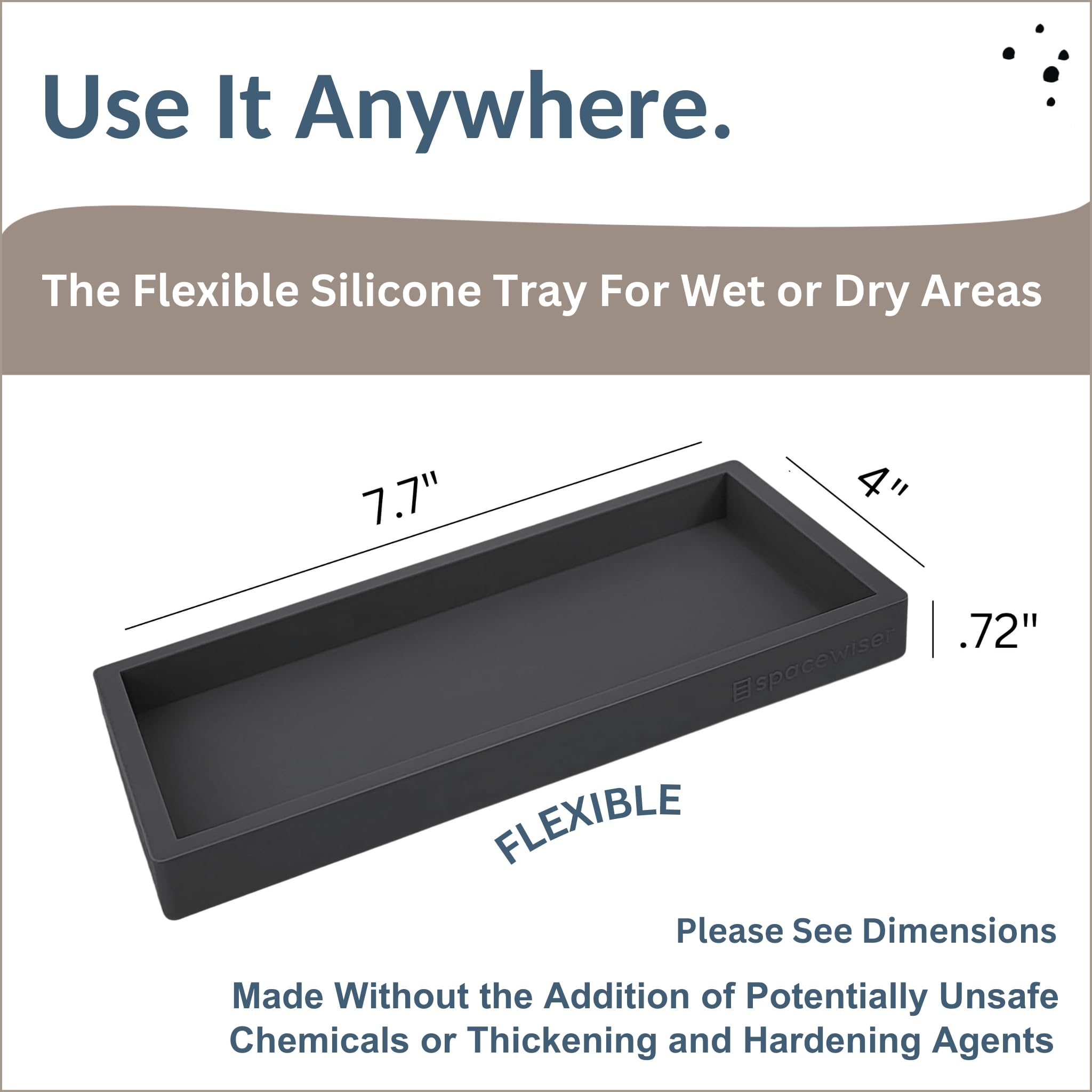 Use It Anywhere - Choose the endlessly useful tray that works anywhere. The Spacewiser Original Silicone Tray is perfect as a bathroom tray, vanity tray, soap dispenser tray or kitchen soap holder. Spacewiser trays are made of premium food grade silicone, without the addition of potentially unsafe thickening agents or chemicals. They’re shatterproof, waterproof, slip-resistant, heat resistant to 425F, and dishwasher safe- a perfect kitchen sink soap tray or black sponge holder for kitchen sink.