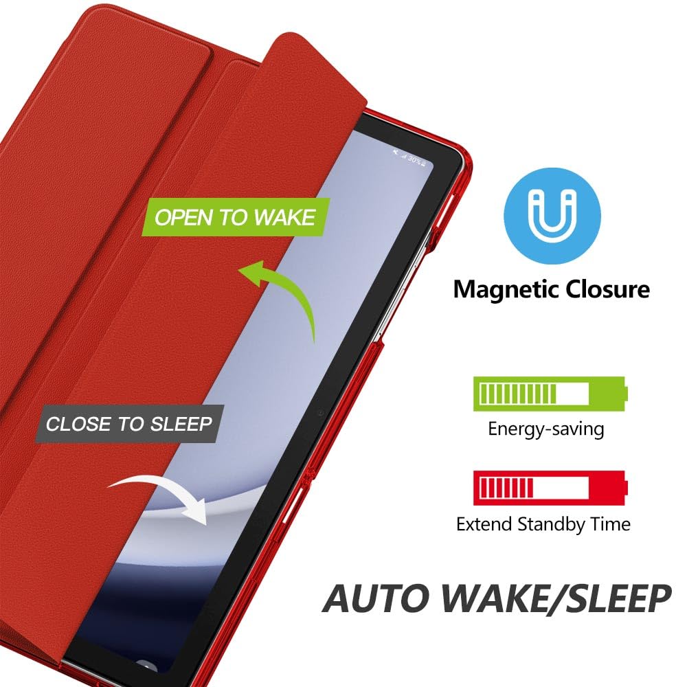 Auto Wake/Sleep: Built-in magnetic strip, automatically wakes or puts your tablet to sleep when the lid is opened and closed. this Tab A9 Plus Case Protects and extends battery life