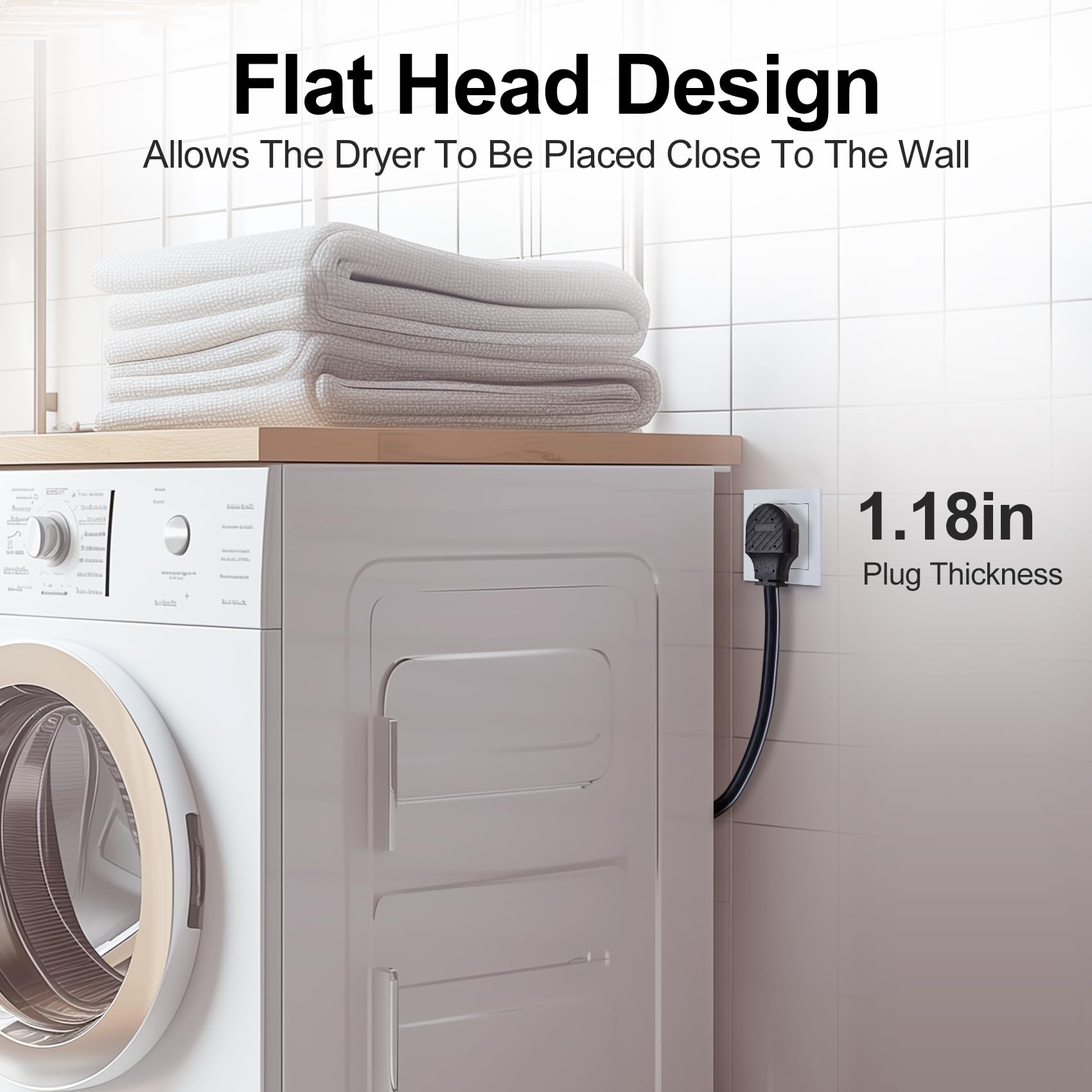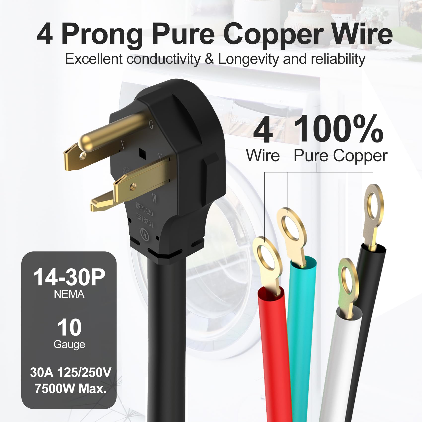 DURABLE & POWERFUL: Heavt duty dryer power cord suit for 30A 4 wire dryer cord outlet, 4 prong 30A NEMA 14-30P plug fits older and most newer dryer models