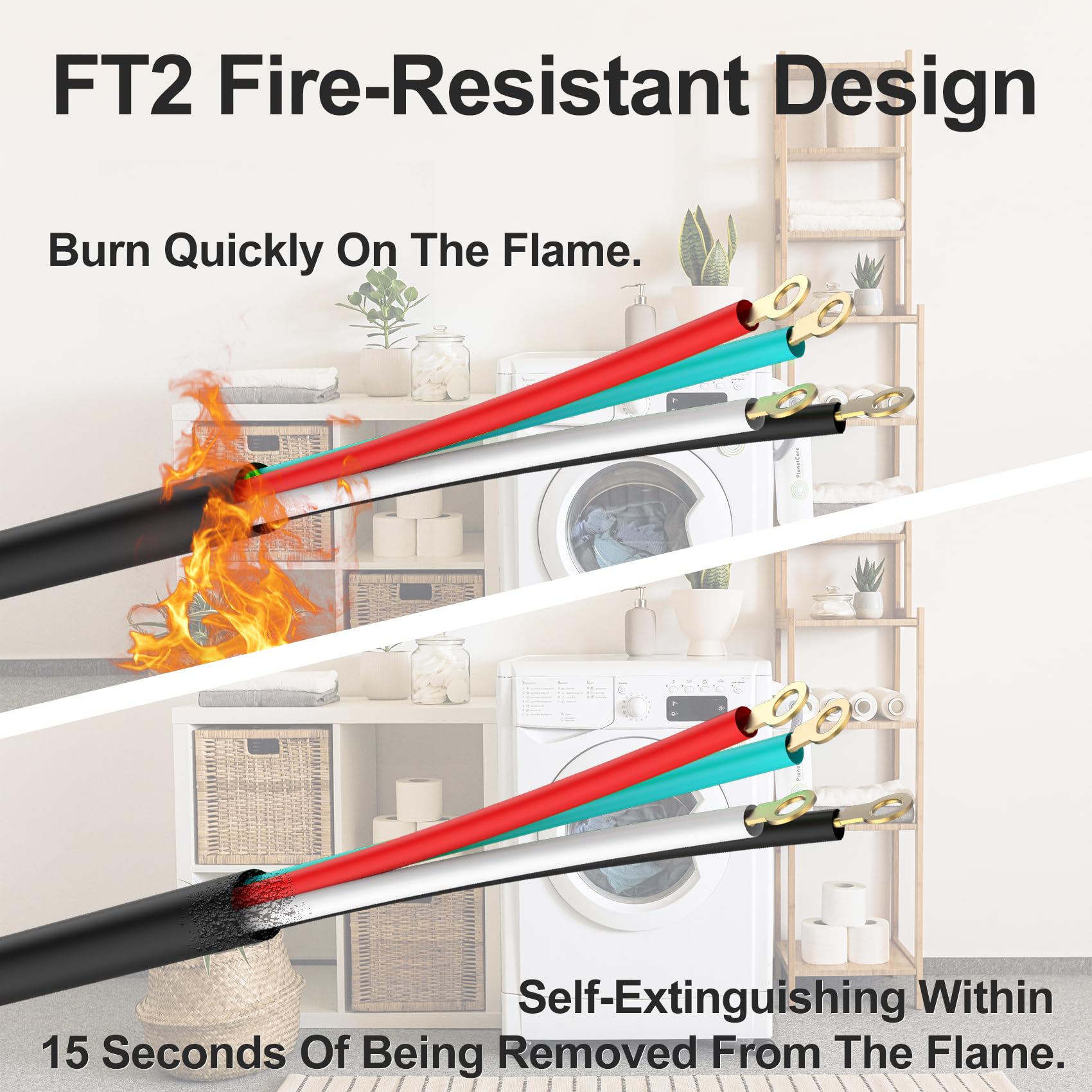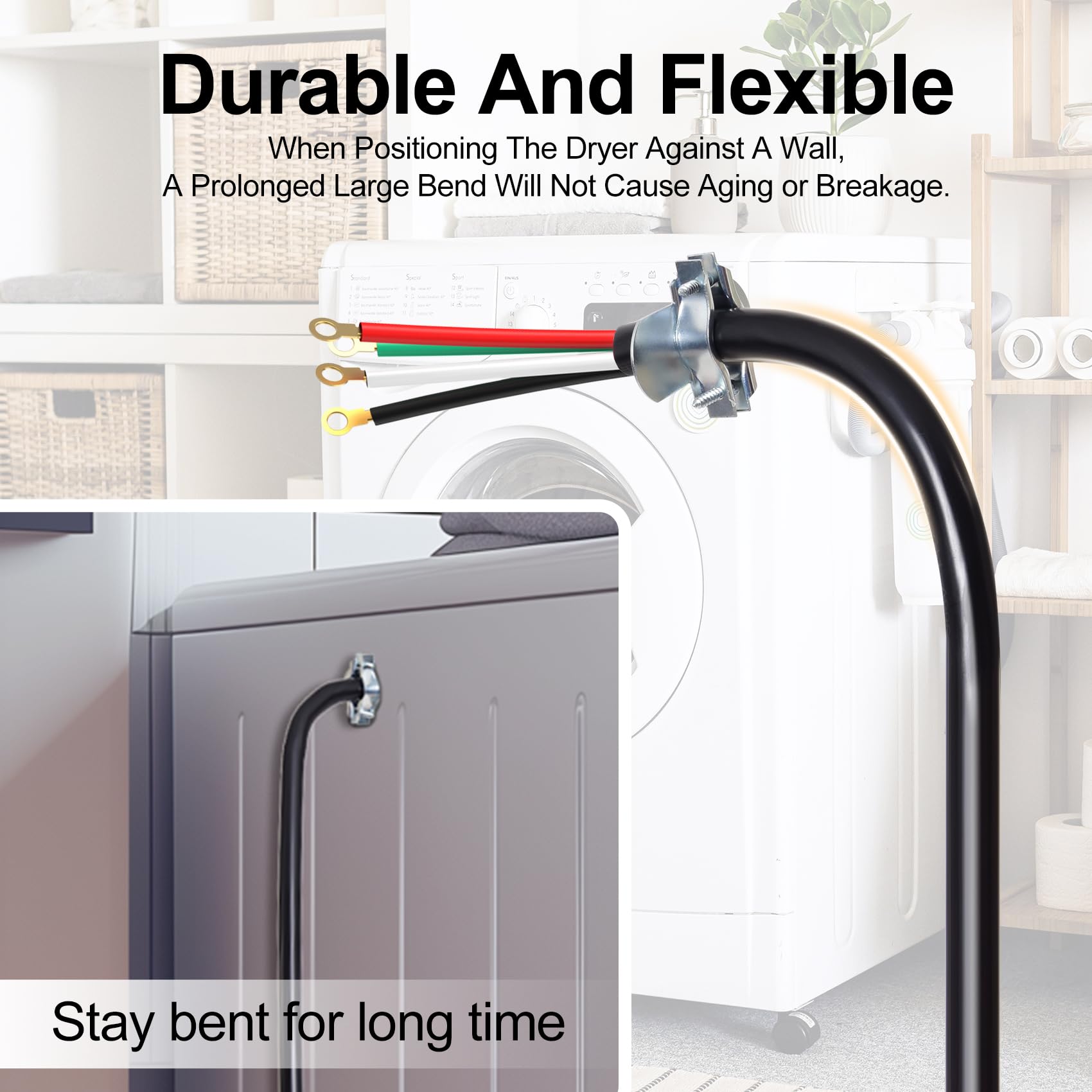 SAFETY: UL listed, 125/250 Volts, works with most electric clothes dryer that takes a 4 prong dryer cord with 10 AWG wires. SDRT cable can withstand high temperatures up to 140℉