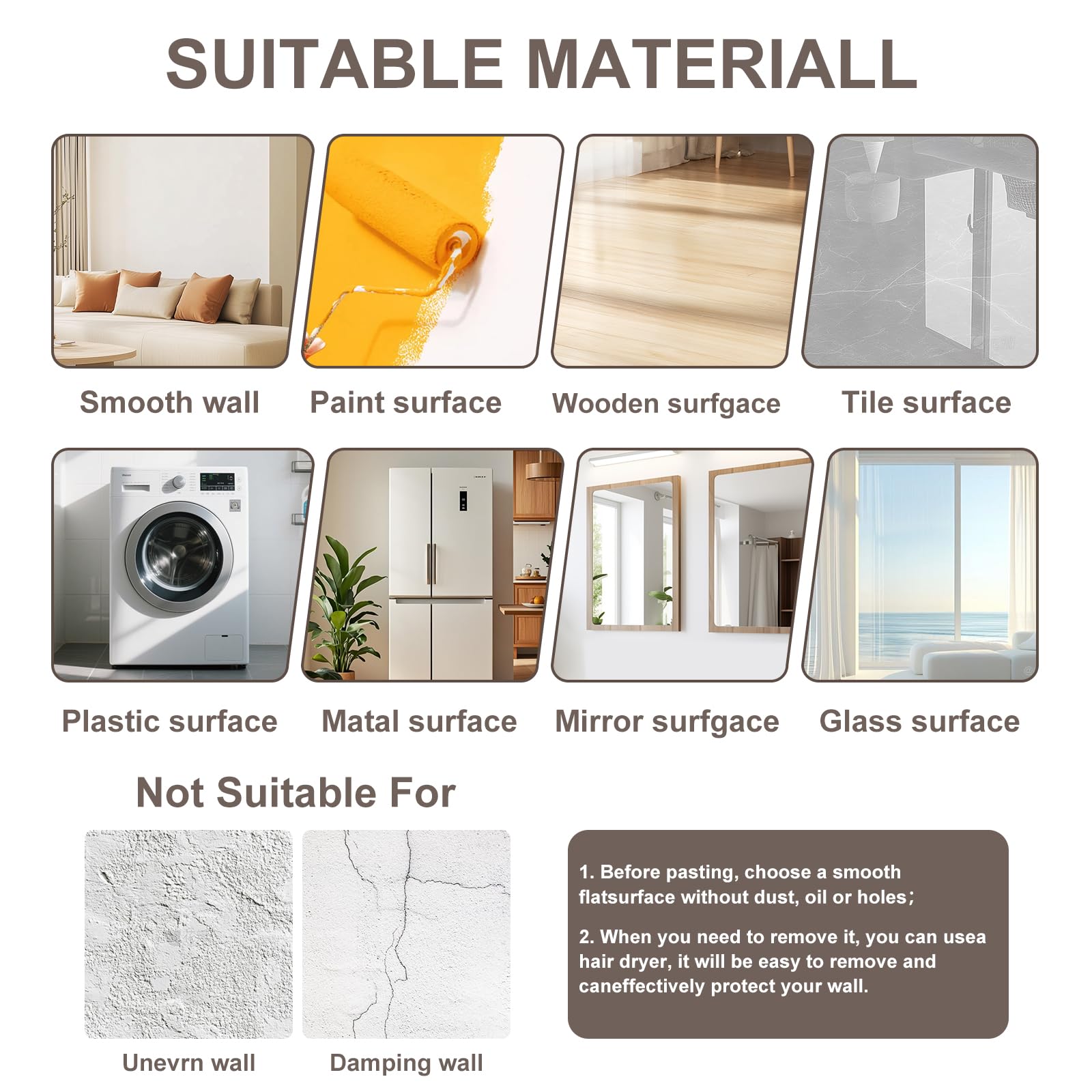 Serviceable Material: Made from quality vinyl, the decal is carefully covered with film on the surface, waterproof and tear-resistant, with good stickiness and durability on smooth and dry surfaces.