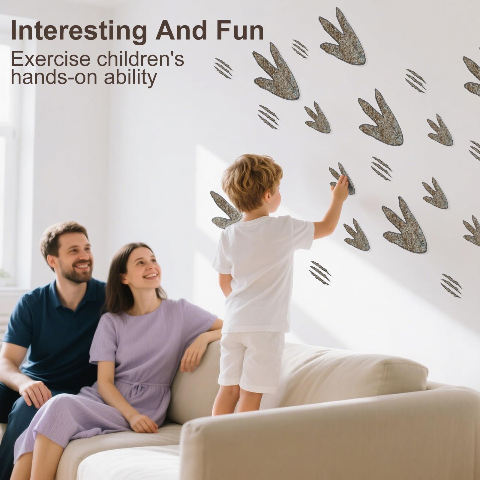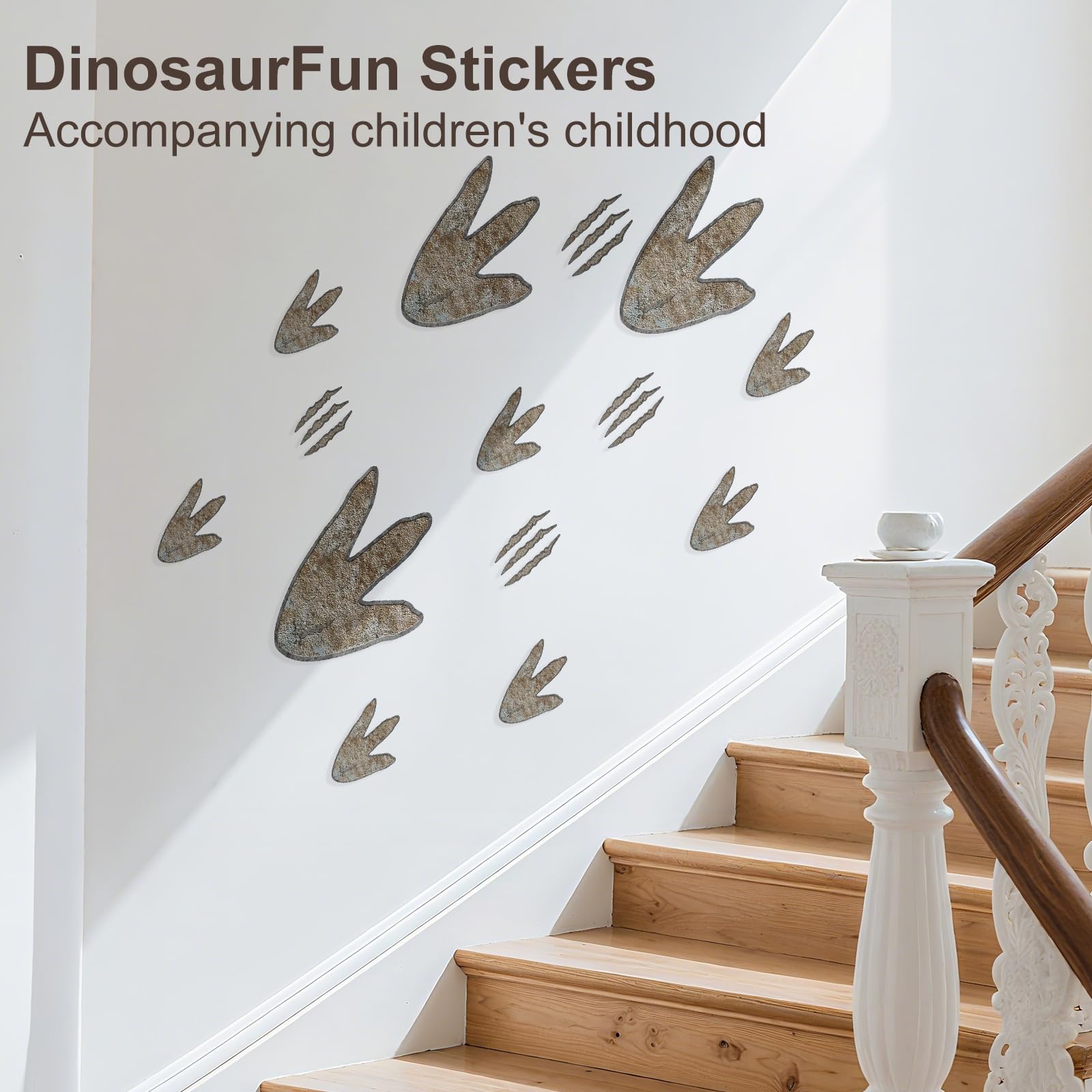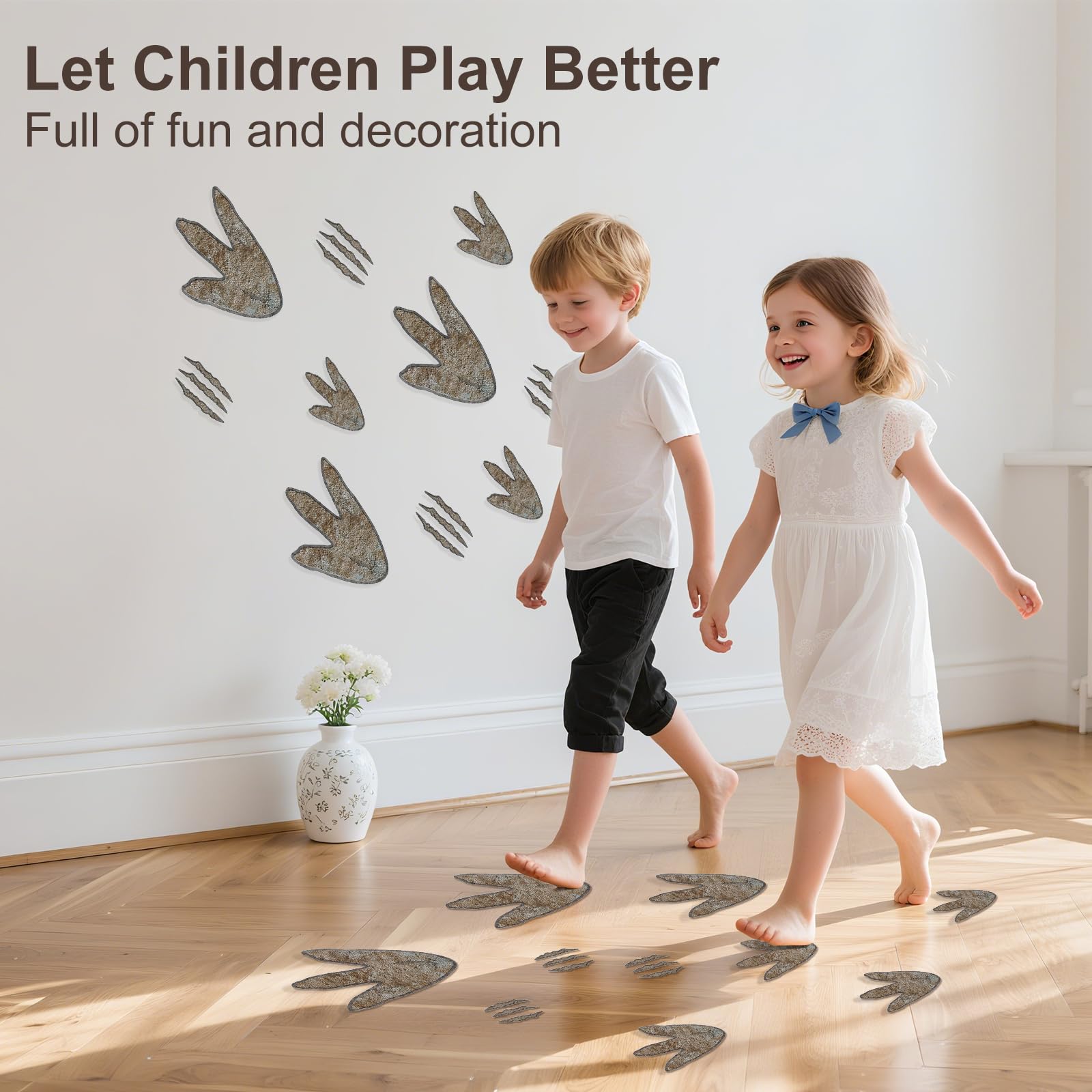 Attractive Home Addition: These dinosaur footprint stickers can adhere to most smooth surfaces like walls, glass, plastic, wood, ceramic, window panes, glass doors, and slightly textured walls or floors, making them a great addition to children's bedroom decorations.