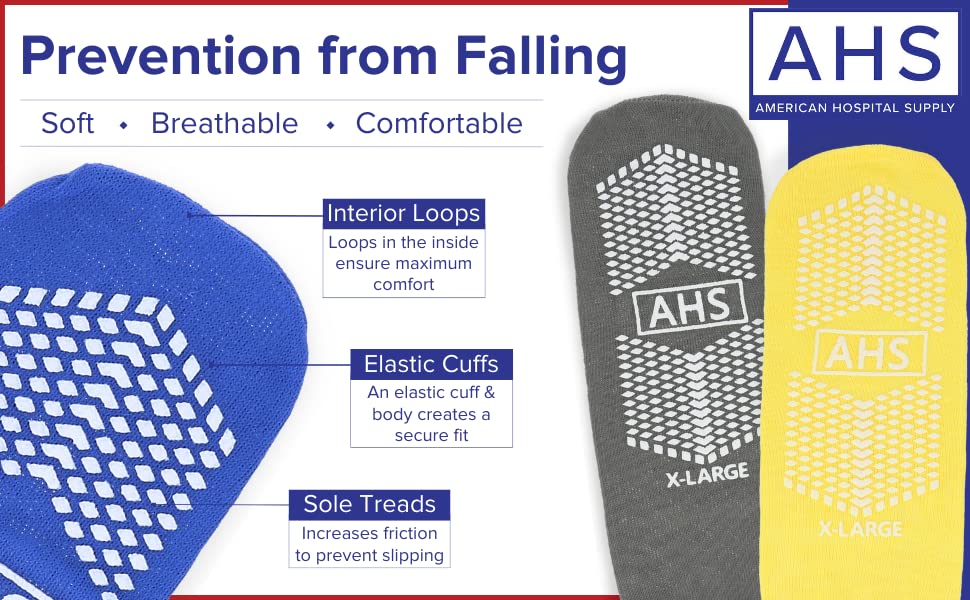 Slip Prevention: The anti slip socks feature a premium tread on the sole, helping increase friction between the sock and floor to prevent the risk of slipping. The sole tread maximizes floor contact to substantially reduce the chances of falls.