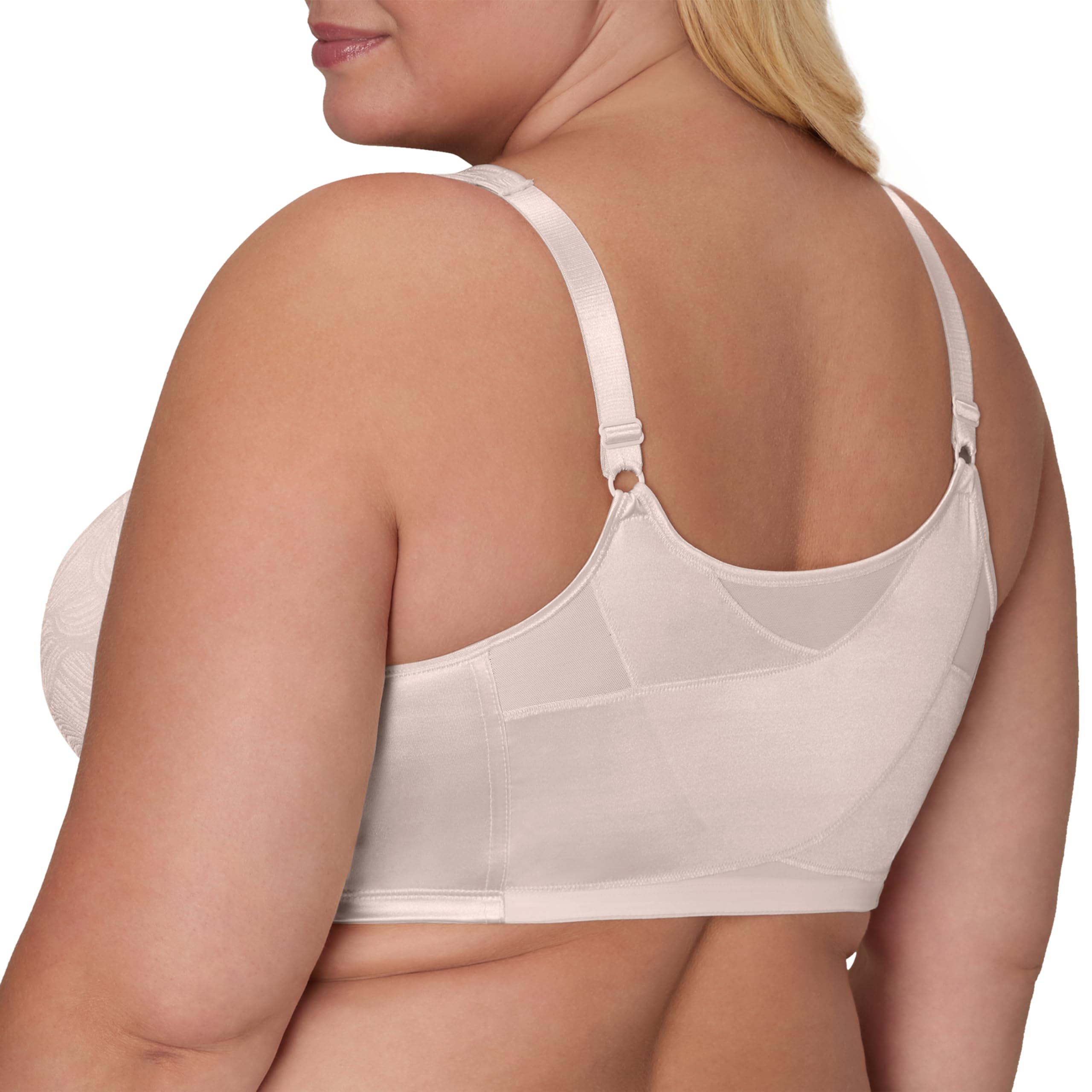 WE HAVE YOUR BACK - Women's bra featuring crisscross back panels with cool mesh insets for side and back smoothing for bulge management.
