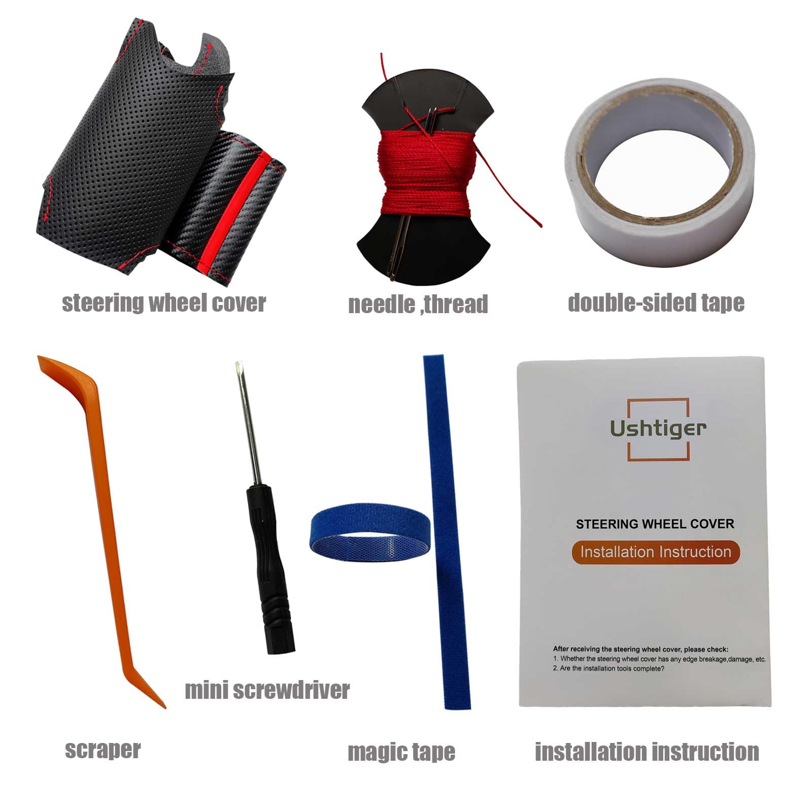 【INSTALLATION】Please don't remove the original leather.The steering wheel cover is a DIY product. You can install it without taking off the steering wheel, airbag. It takes about 1-2 hours to hand sew the cover
