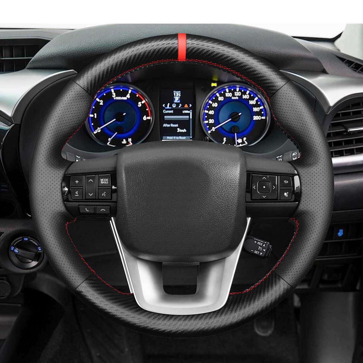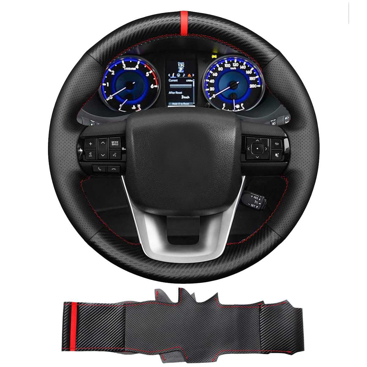 【Material】: Made of microfiber leather,wear-resistant,soft and breathable,this cover blends durability with an exquisite look. 【Suitable car model】: Fit for Toyota Hilux 2015-2021 / Fortuner 2015-2021. Please check the original steering wheel photo,make sure it is the same as your steering wheel.If you are not sure,please feel free to contact us. 【Pros】: Perfect for damaged steering wheel,rubber steering wheel,new steering wheel,steering wheel that wants to change its style. 【Customization】: We also offer personalized customization for your car steering wheel cover.Choose the style,leather color,stripe and thread color (black,white,red,blue,grey,brown,yellow,etc.). 【Package】: 1 Steering wheel cover. 2 Needles and 1 sew thread. 1 Double-sided adhesive. 1 Small plastics blade. 4 Magic tape. 1 Small flat-blade screwdriver. 【Note】: Airbag and steering wheel are not included.The cover need sewing by yourself using thread and needle,need about 1-2 hours.