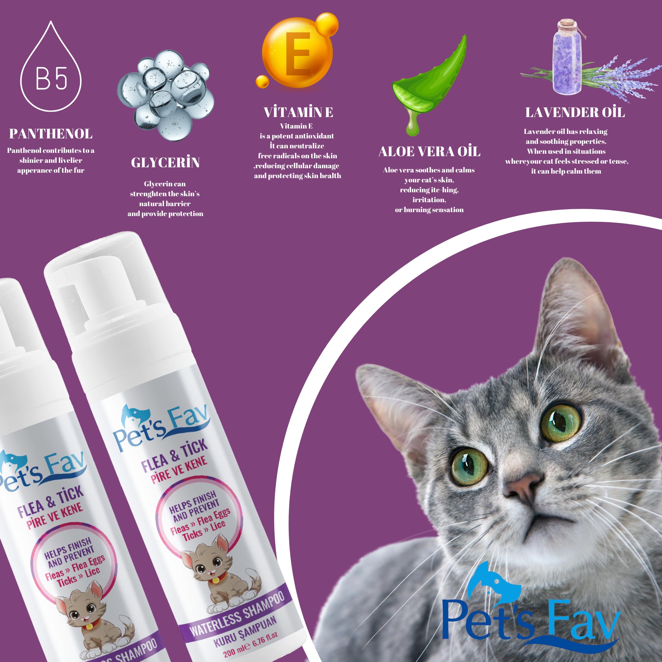 Quick-Drying Formula: Rapid drying formula allows for a speedy clean, leaving the cat's fur dry to the touch shortly after application.