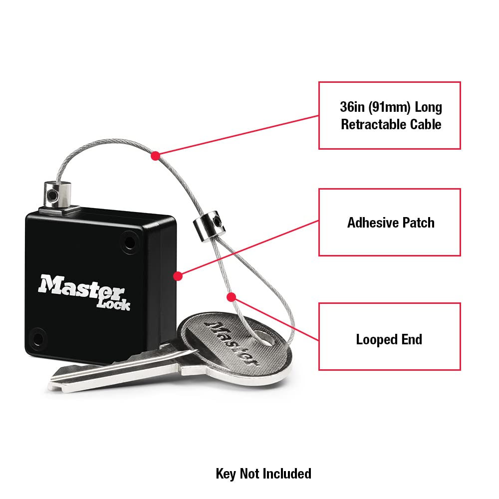 The Master Lock retractable key tether is an accessory intended for use with the Master Lock mechanical and Bluetooth enabled lock box families. The key tether secures the key to the lock box, precluding the guest from taking the key with them after accessing the property.