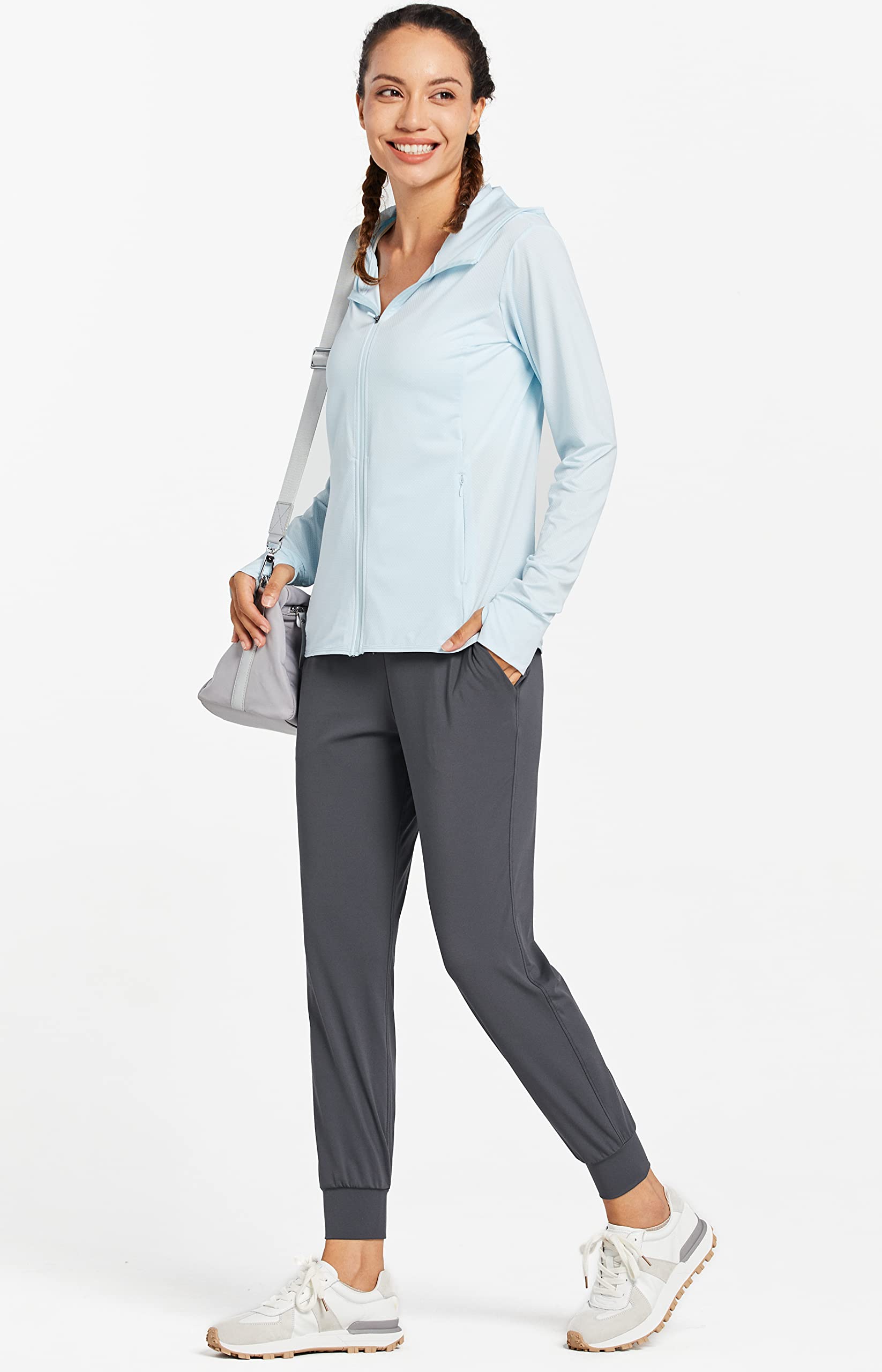 The fabric is super stretchy, Skin-Friendly, wrinkle-free and don't attract hair, the athletic joggers feature the 4-way-stretch and just like a second-layer of skin, they provide you with maximum comfort to ensure all-day active free.
