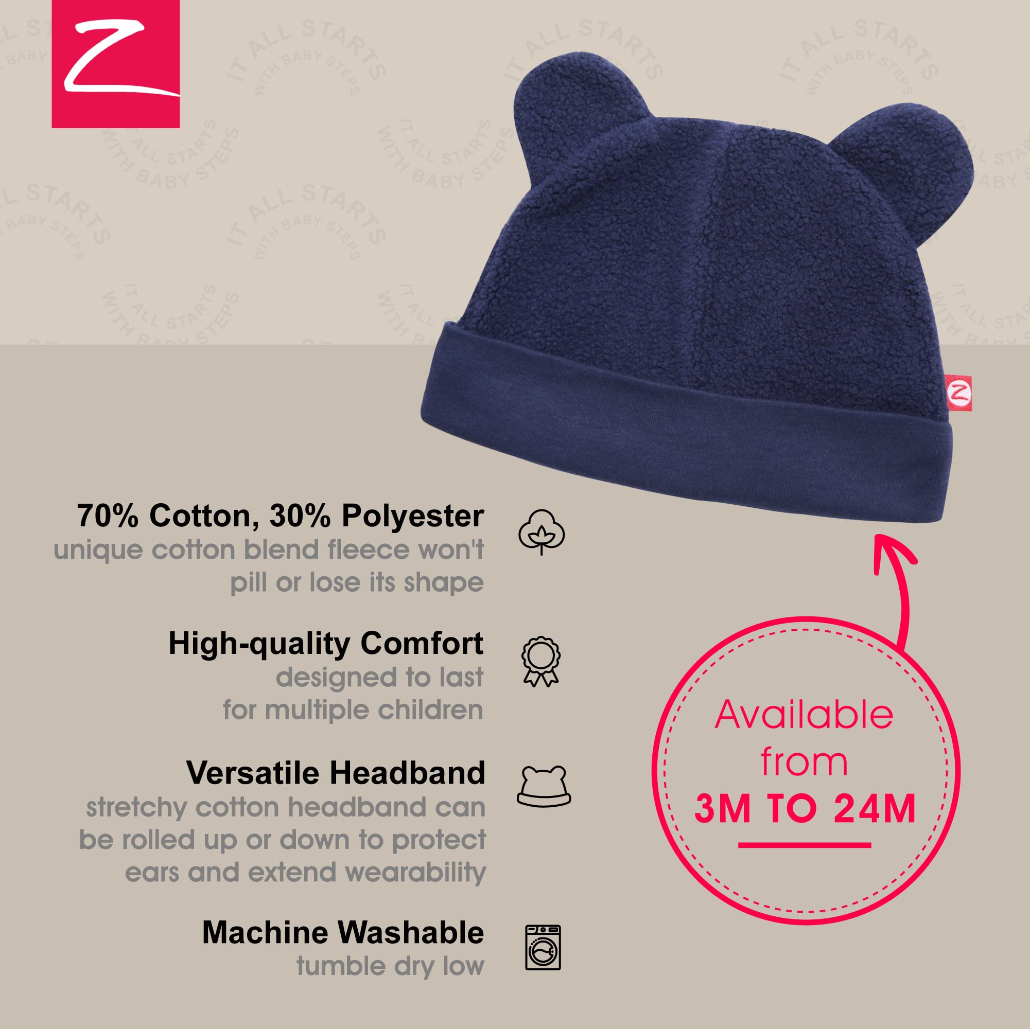 EASY-CARE WINTER CAPS: Unlike other baby winter hats, ours maintain their shape and comfortable feel after extended use. This fleece baby hat should be machine washed in cold water and tumble dried on low. It can also be ironed with a warm iron if needed.