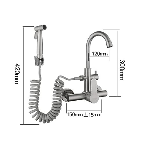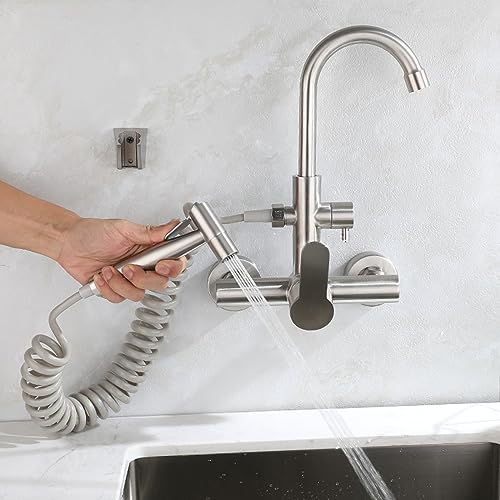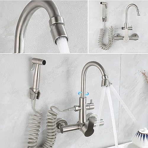 Wall-Mounted Kitchen Mixer: Featuring a 180° Swivel Spout and Stainless Steel Spray Gun, it provides exceptional flexibility and fom of movement. Perfect for Double Sinks, it is designed for