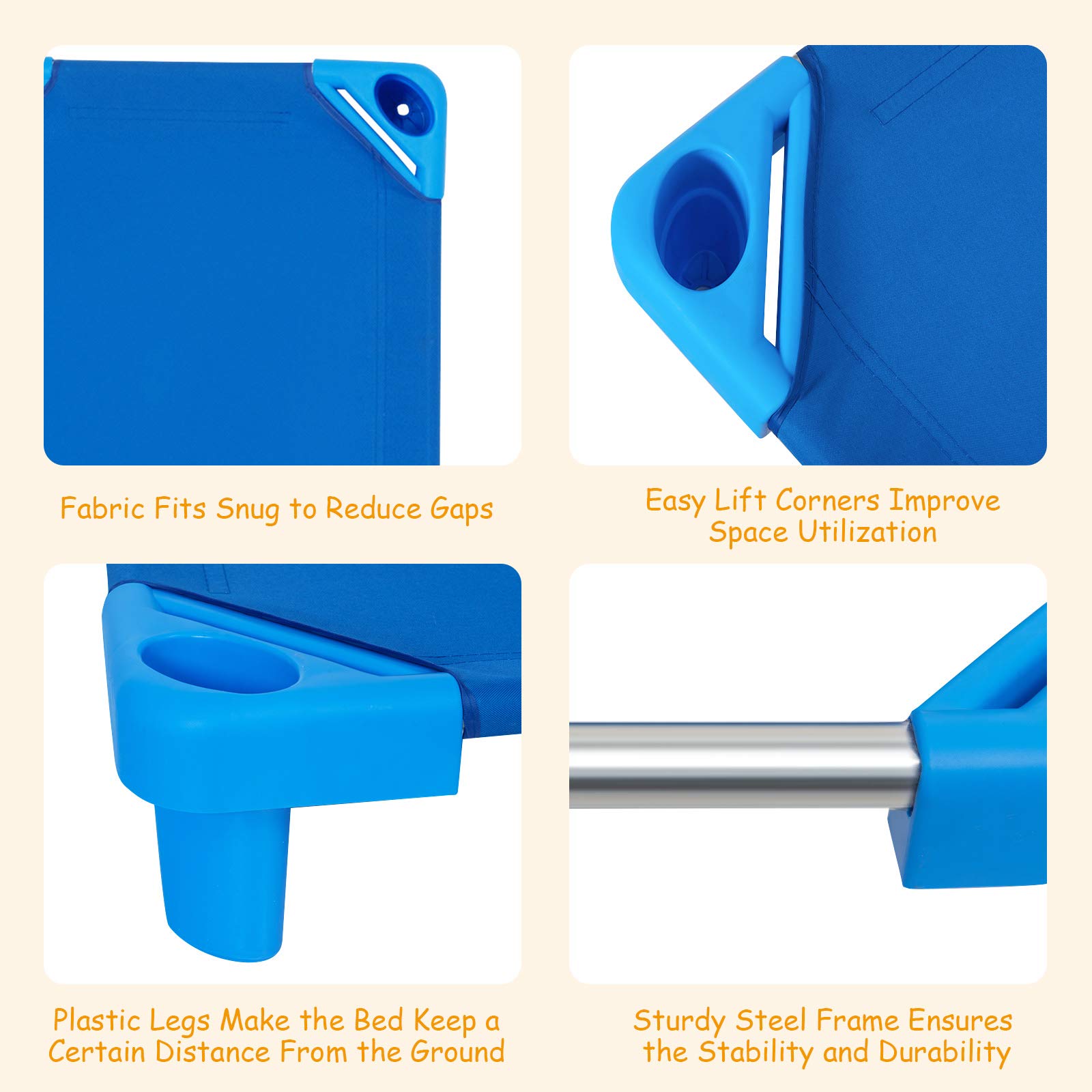 KOTEK Stackable Sleeping Daycare Cots for Kids, Portable Toddler Nap Cots, 52" L x 23" W, Ready-to-Assemble, Space-Saving Children Naptime Cot for Classroom Preschool (Set of 6, Blue)
