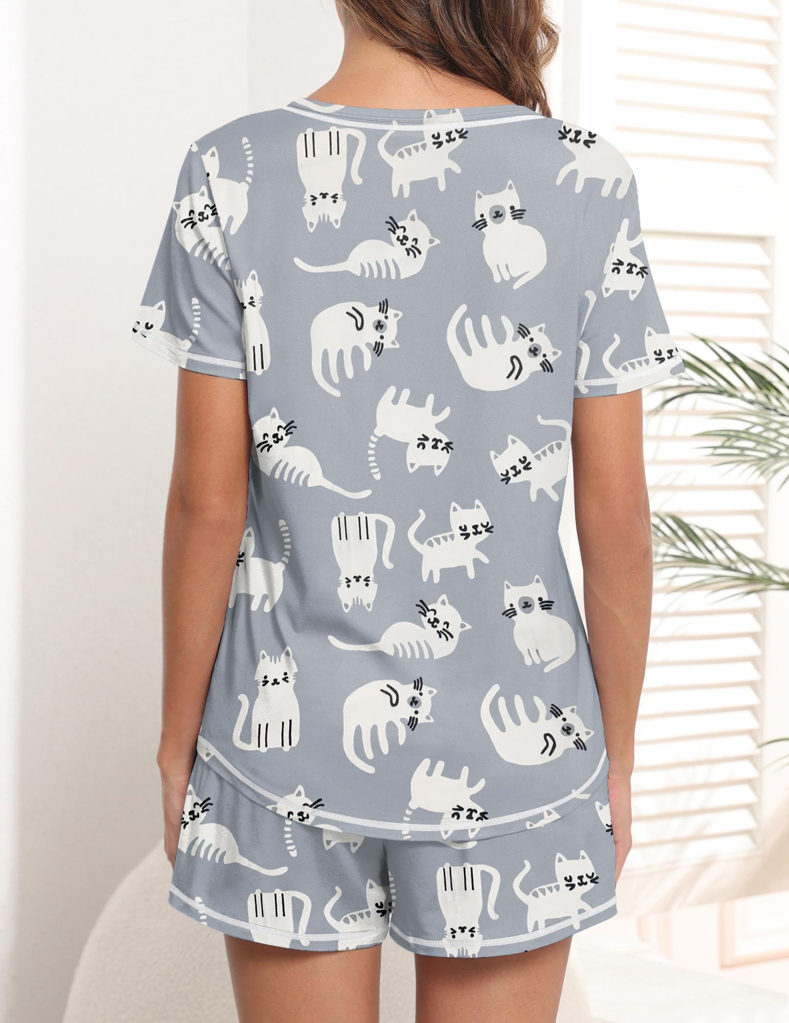 Design: The pajama top features classic chest pocket and V neck, with exquisite hemming workmanship; the pajama shorts features adjustable drawstring and pockets. Loose fit lounge sets, cute and comfy pajamas for women and teens girls