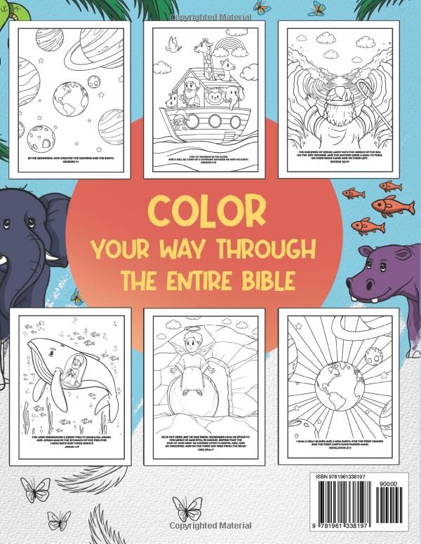 Created to teach children God's Word while being entertained for hours, this book is full of Bible stories from both the Old and New Testament.This “Bible Stories Coloring Book” is a fun coloring book for kids ages 4 and up! This book was designed to be a fun and engaging tool that takes kids through the Bible from creation to Jesus' return. Hand drawn illustrations and verse quotes will provide entertainment all while reminding your child of God’s beautiful story of redemption. Grab a set of crayons and pair them with this book for an amazing gift. This book makes a great activity for kids devotional time! This Coloring Book includes: Great for children ages 4 and up 40 pages of hand drawn illustrations and bible story text 8.5 x 11 inches Perfect for - holidays, VBS, birthdays, and small groups