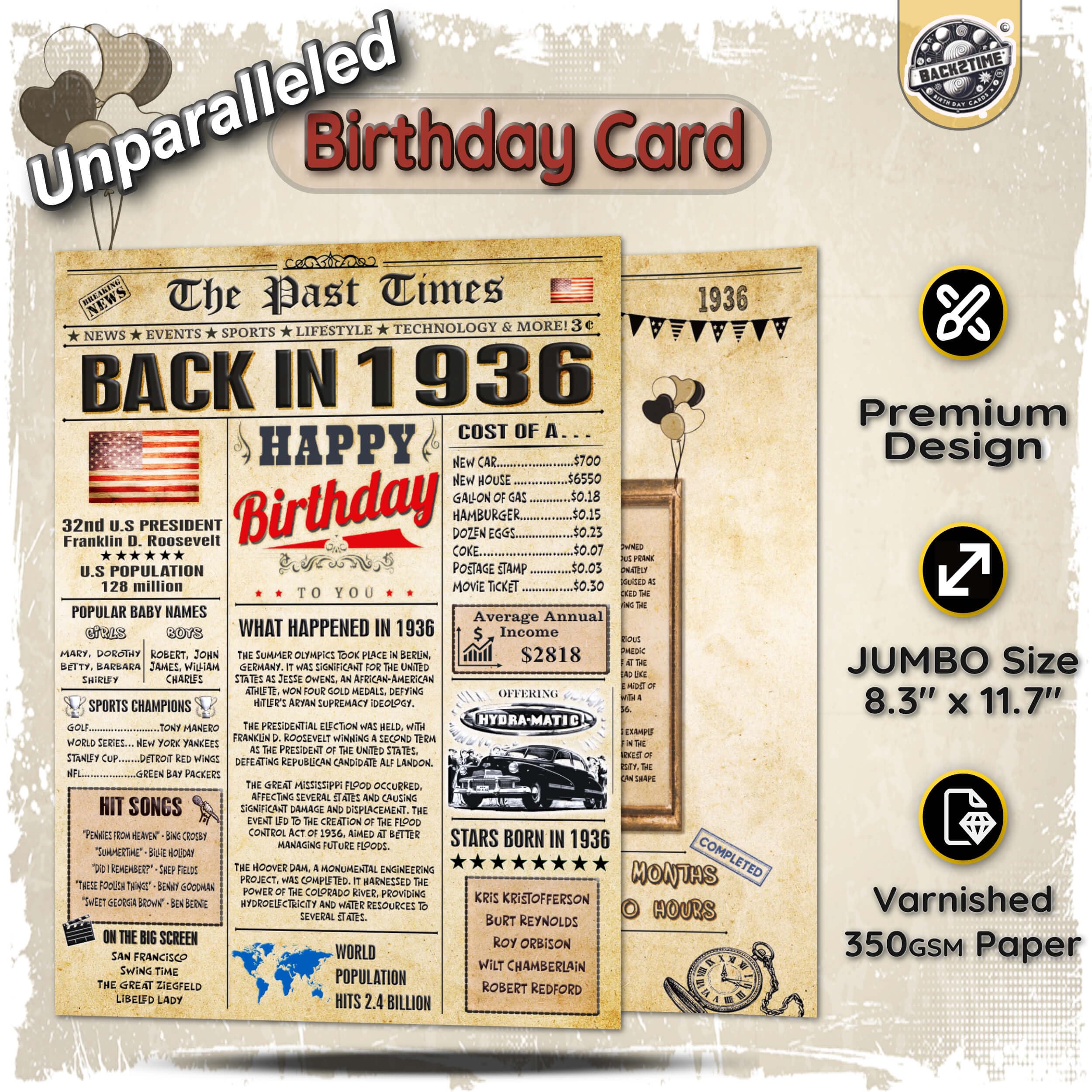 π FUNNY BIRTHDAY CARD + EXCLUSIVE ENVELOPE π Enjoy a beautifully printed Back in 1936 card that's entertaining to read, featuring a special bonus on the back with intriguing stories or lesser-known facts from that year. The interior offers space for personalized messages, designed with an aged appearance and elegant decorations to enhance the vintage feel. The included envelope boasts a unique design ideal for mom and adult born in 1936. Birthday Cards for Women, Birthday Cards for Men.