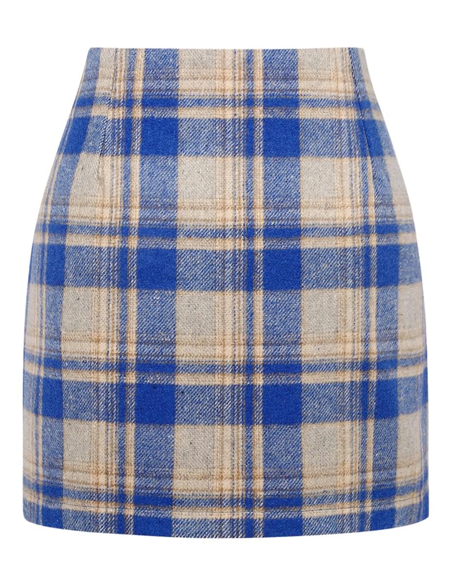 Style: Casual slim fit bodycon flannel plaid mini skirts for junior/lady