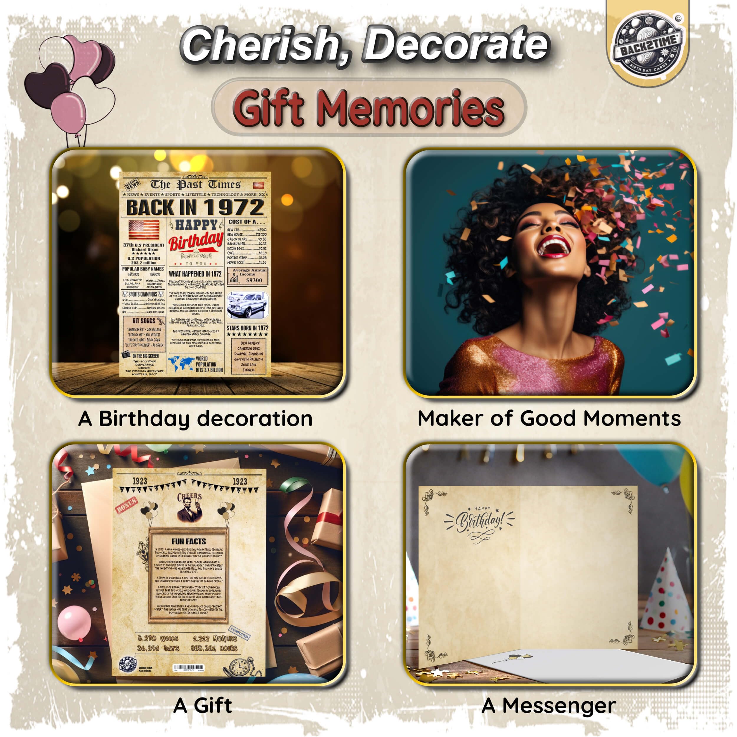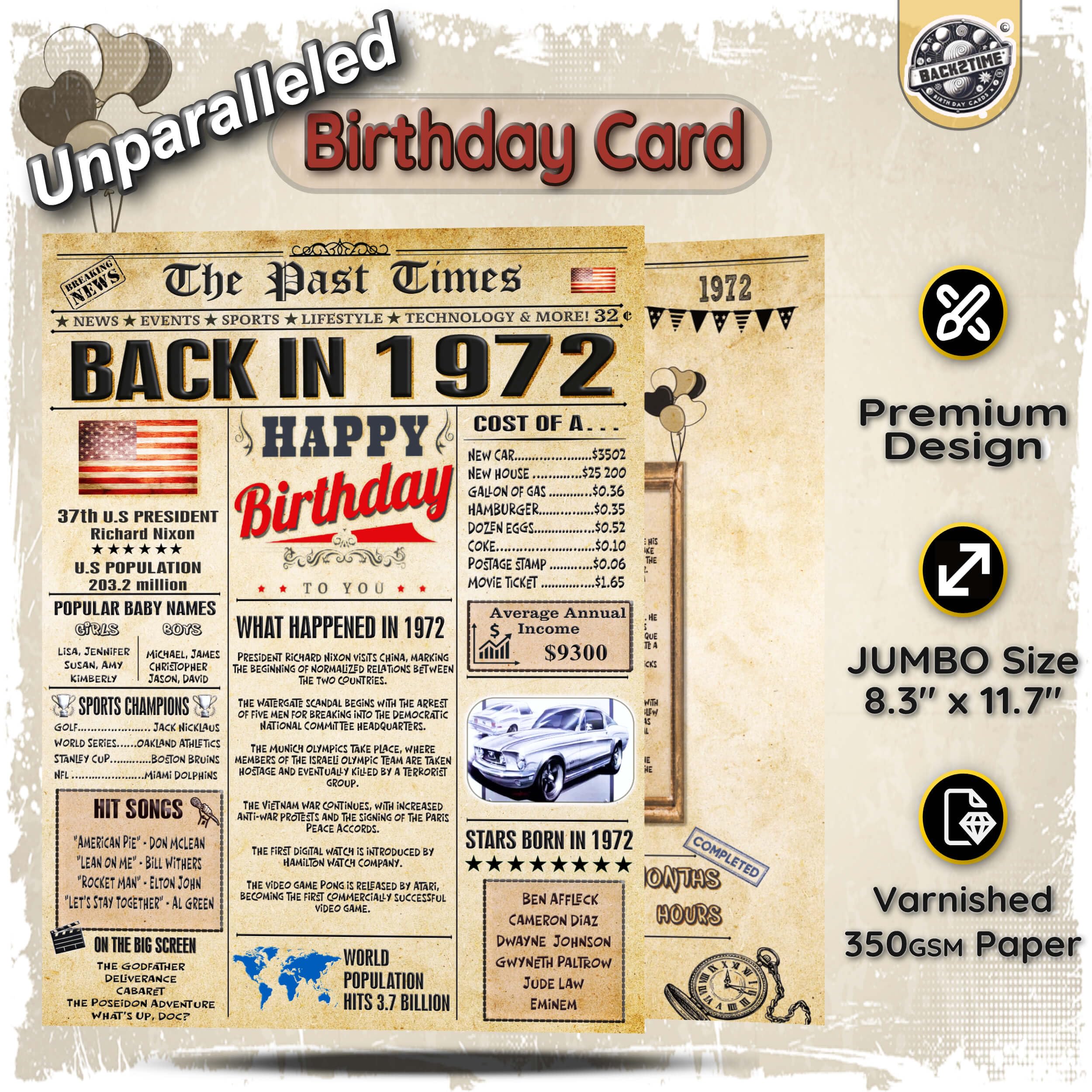 π FUNNY BIRTHDAY CARD + EXCLUSIVE ENVELOPE π Enjoy a beautifully printed Back in card that's entertaining to read, featuring a special bonus on the back with intriguing stories or lesser-known facts from that year. The interior offers space for personalized messages, designed with an aged appearance and elegant decorations to enhance the vintage feel. The included envelope boasts a unique design ideal for mom and adult born in 1972. Birthday Cards for Women, Birthday Cards for Men.