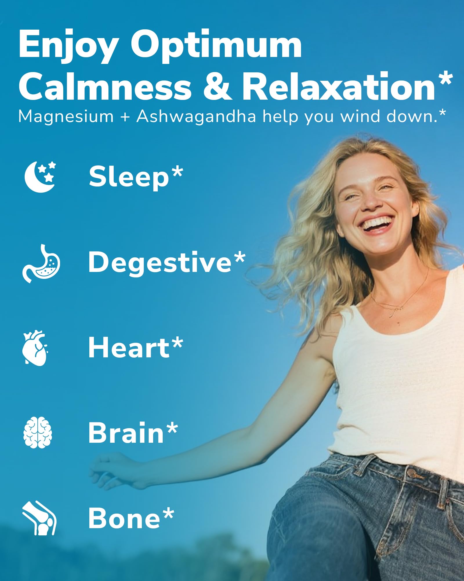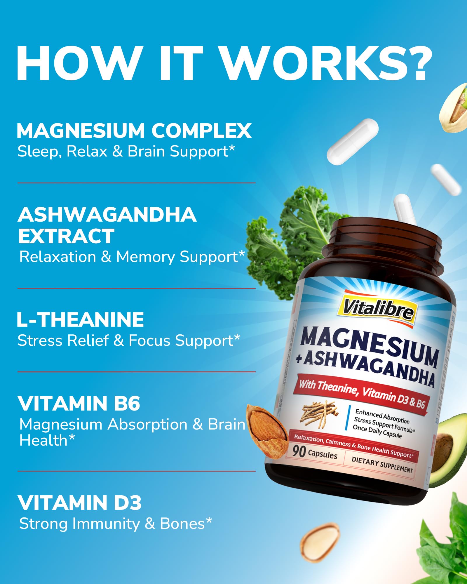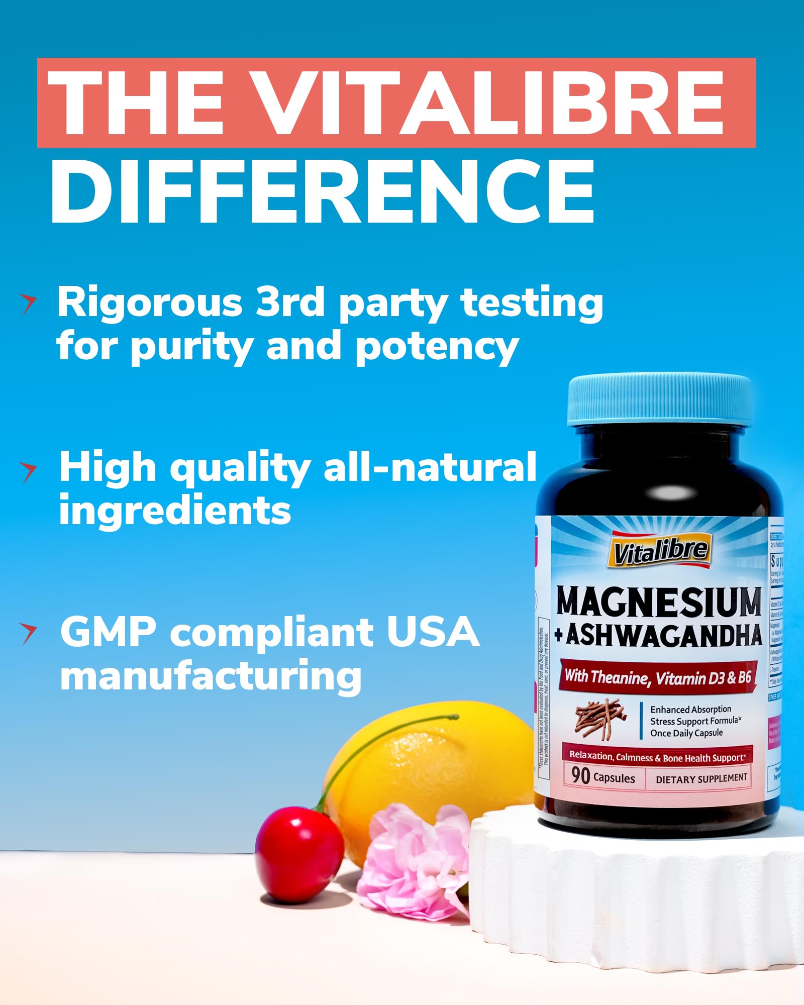 The Most Bioavailable Magnesium Complex: Vitalibre Magnesium Ashwagandha Complex Supplement uses magnesium glycinate for its high bioavailability and gentle effect on the stomach. This highly absorbable form features the highest GI tolerance and absorption.