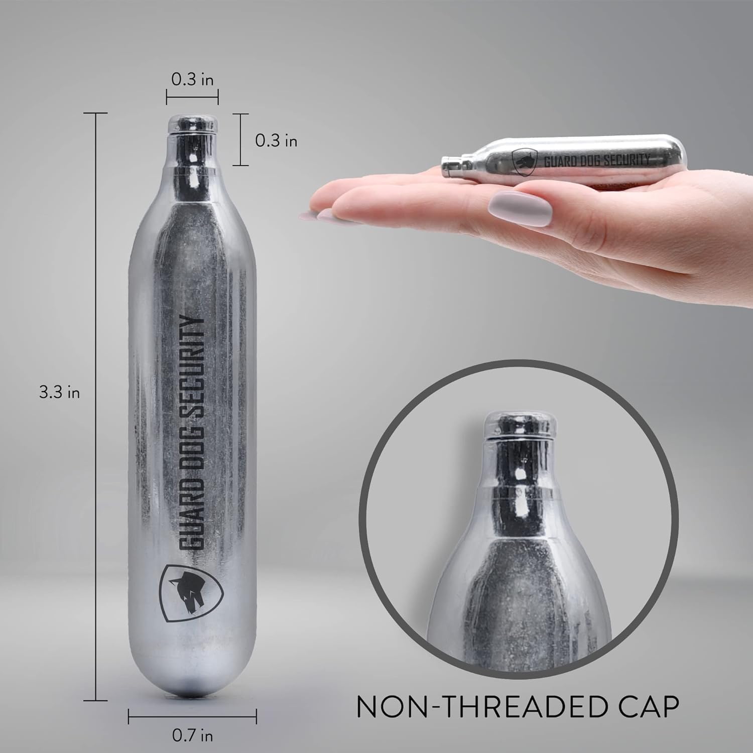 UNIVERSALLY COMPATIBLE: Guard Dog CO2 capsules are compatible with most airguns that require C02, like a C02 pistol, CO2 gun, CO2 bb pistol, a CO2 bb gun, a CO2 pellet gun, an airsoft gun CO2 , airsof rifle CO2 , paintball markers, or paintbal guns. Can also be use for Tire or Ball inflator and lifesaving supplies like a life saving bracelet