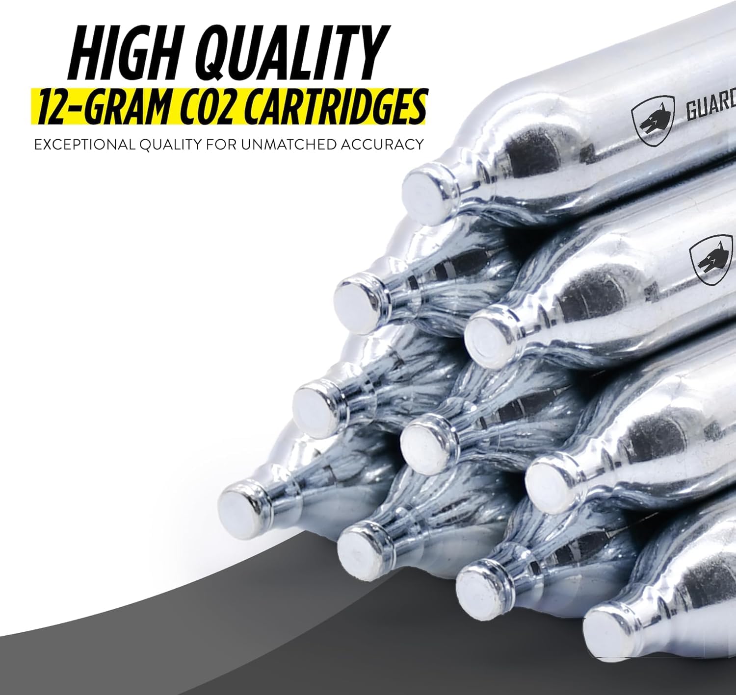 ENHANCE YOUR EXPERIENCE: Elevate your airsoft adventure with Guard Dog Security 12g CO2 cartridges, combining power, reliability, and performance for an immersive shooting experience