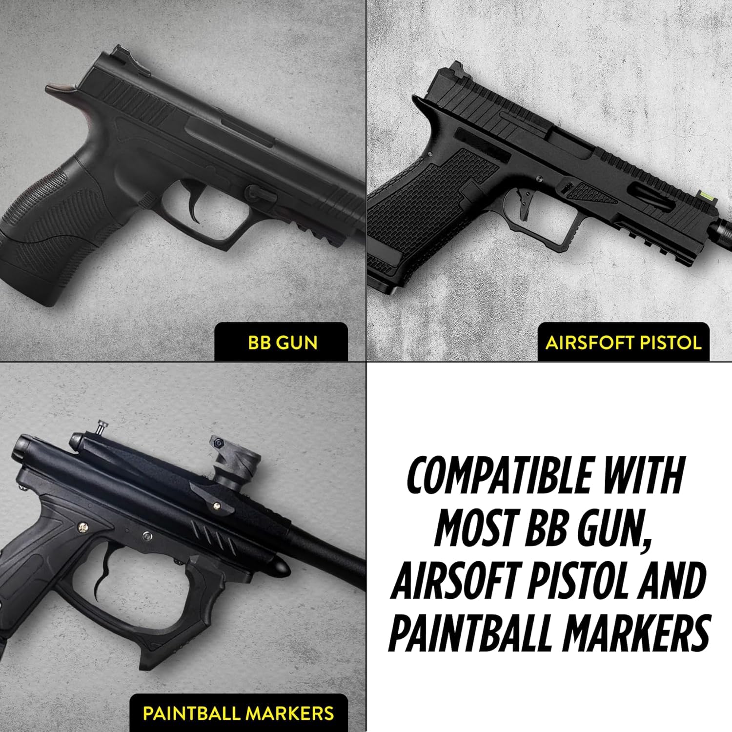CONSISTENT POWER DELIVERY: When it comes to powering your Airsoft BBs or playing in a paintball tournament, you need stable and reliable power output. Each cartridge can deliver up to 200 shots. With enough CO2, pressure, and strong airflow, you can shoot at a rapid rate, as fast as you're ready to make it, without worrying about fluctuations in power
