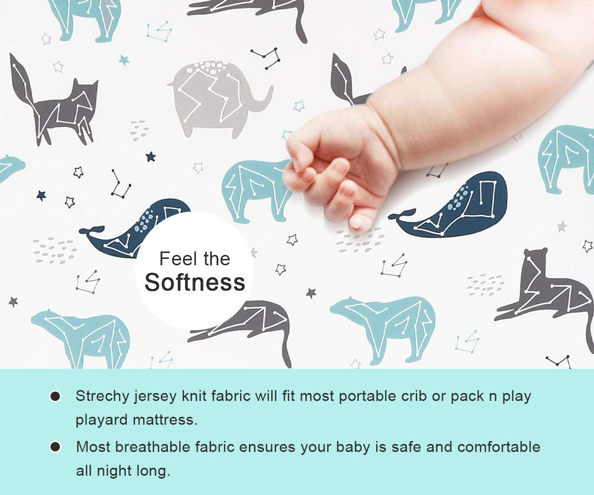 DURABLE & EASY TO CLEAN FOR BUSY PARENTS:These baby crib sheets are machine washable, quick-drying, and resistant to wear and tear, making them a practical choice for moms and parents. Perfect for daycares or frequent use, they maintain their softness and vibrant colors even after multiple washes.