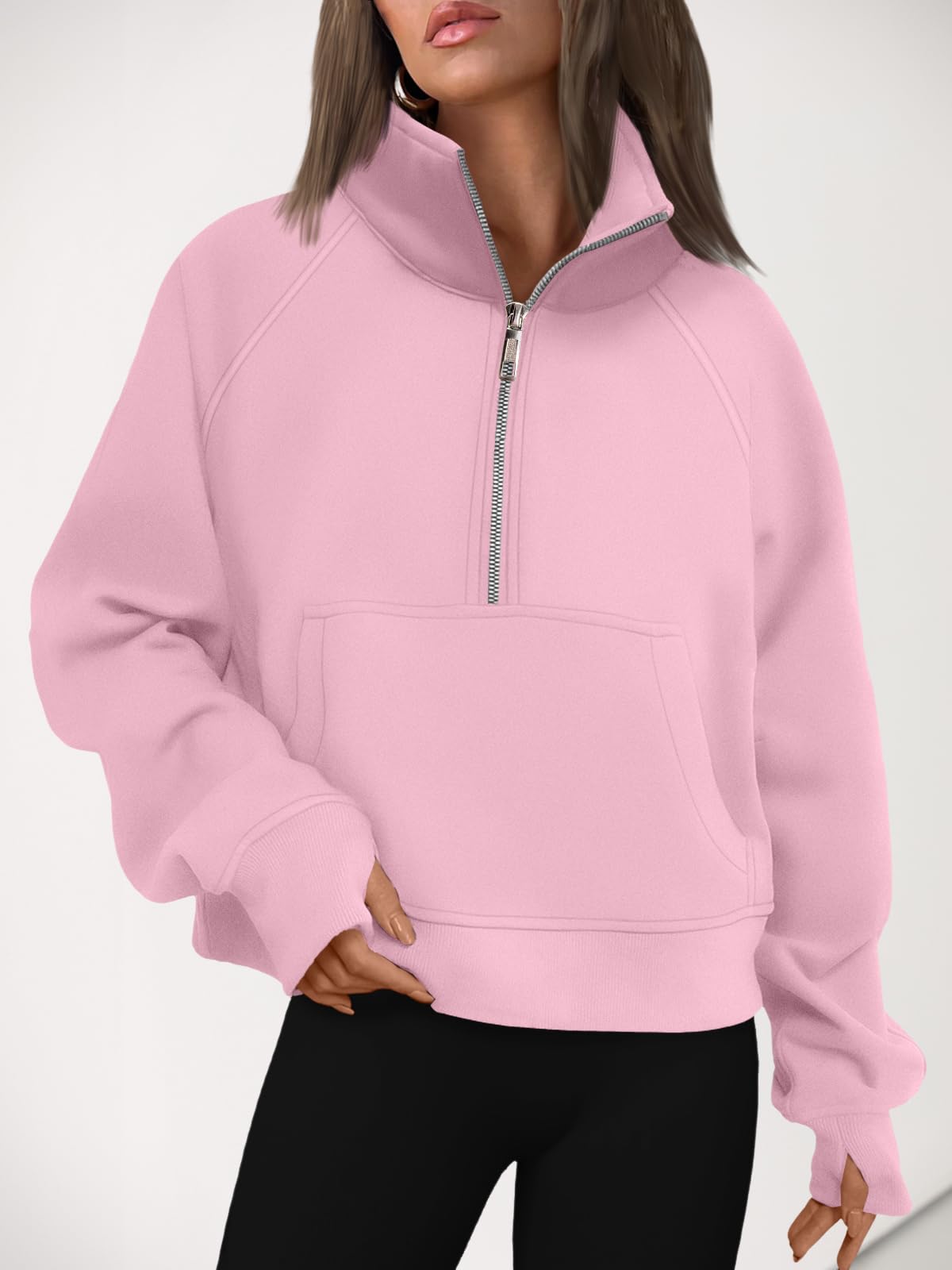★Fashion: 1/2 zip up collar sweatshirt, the zipper works smoothly, solid color, stand collar, y2k clothing, fleece lined, soft inside, relaxed fit, crop top