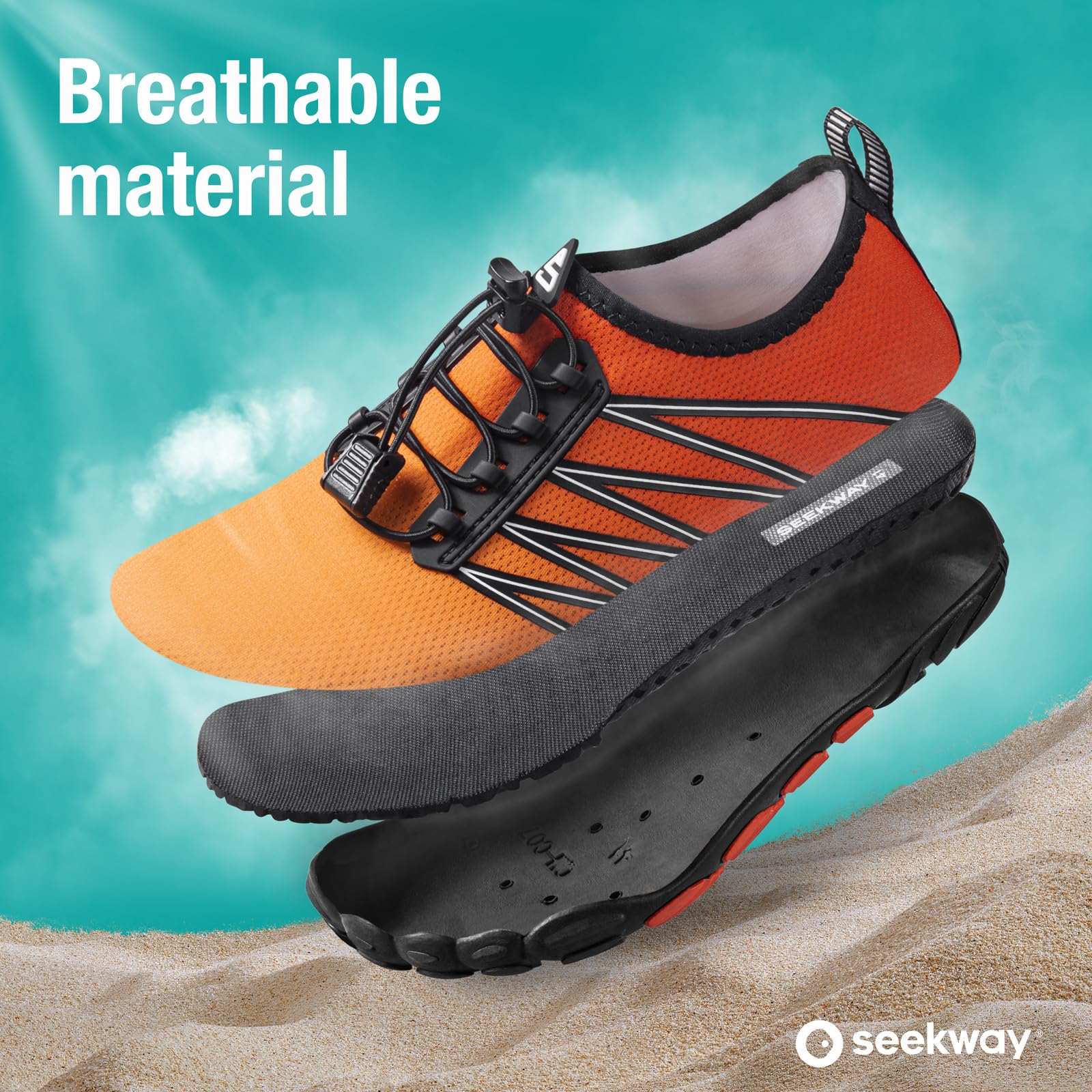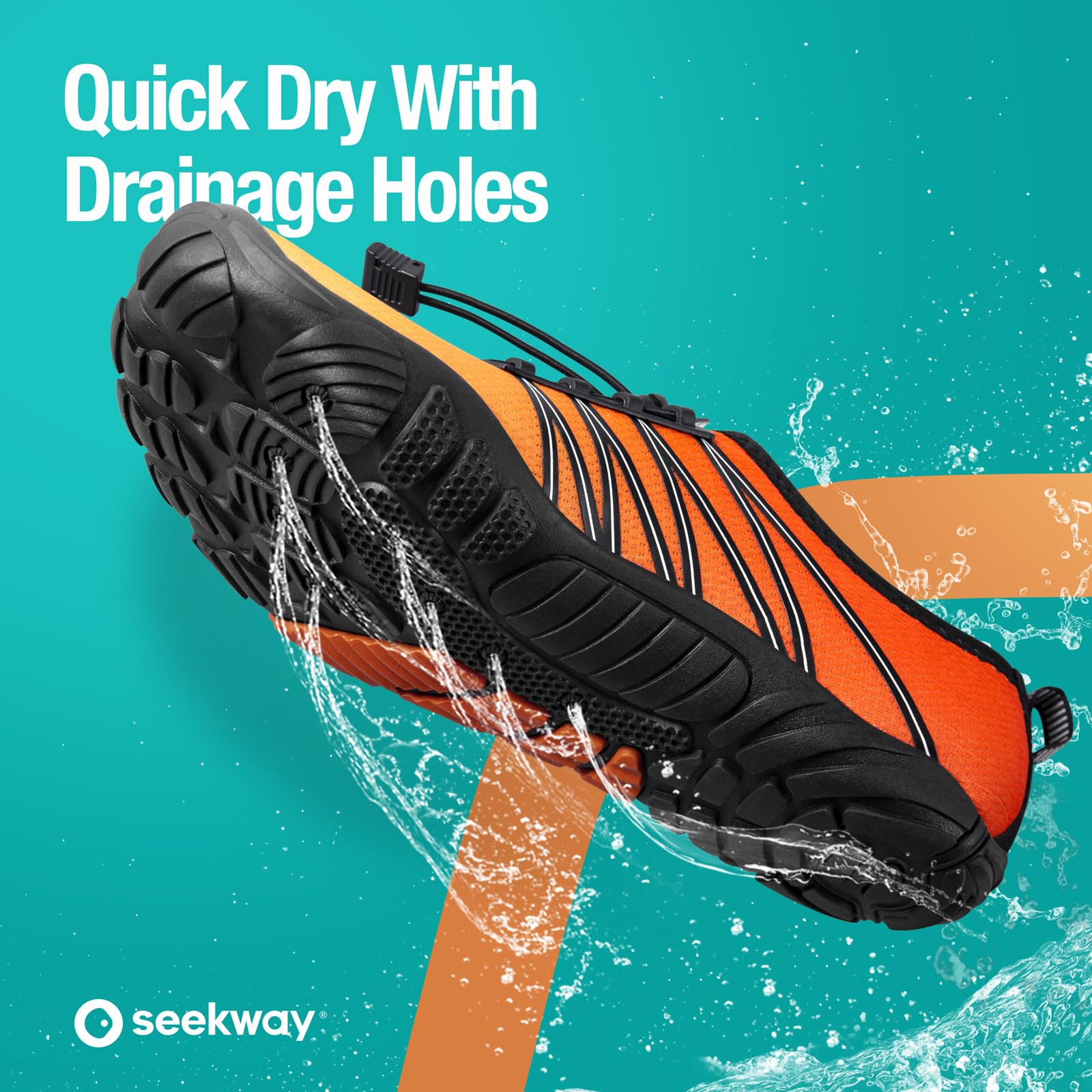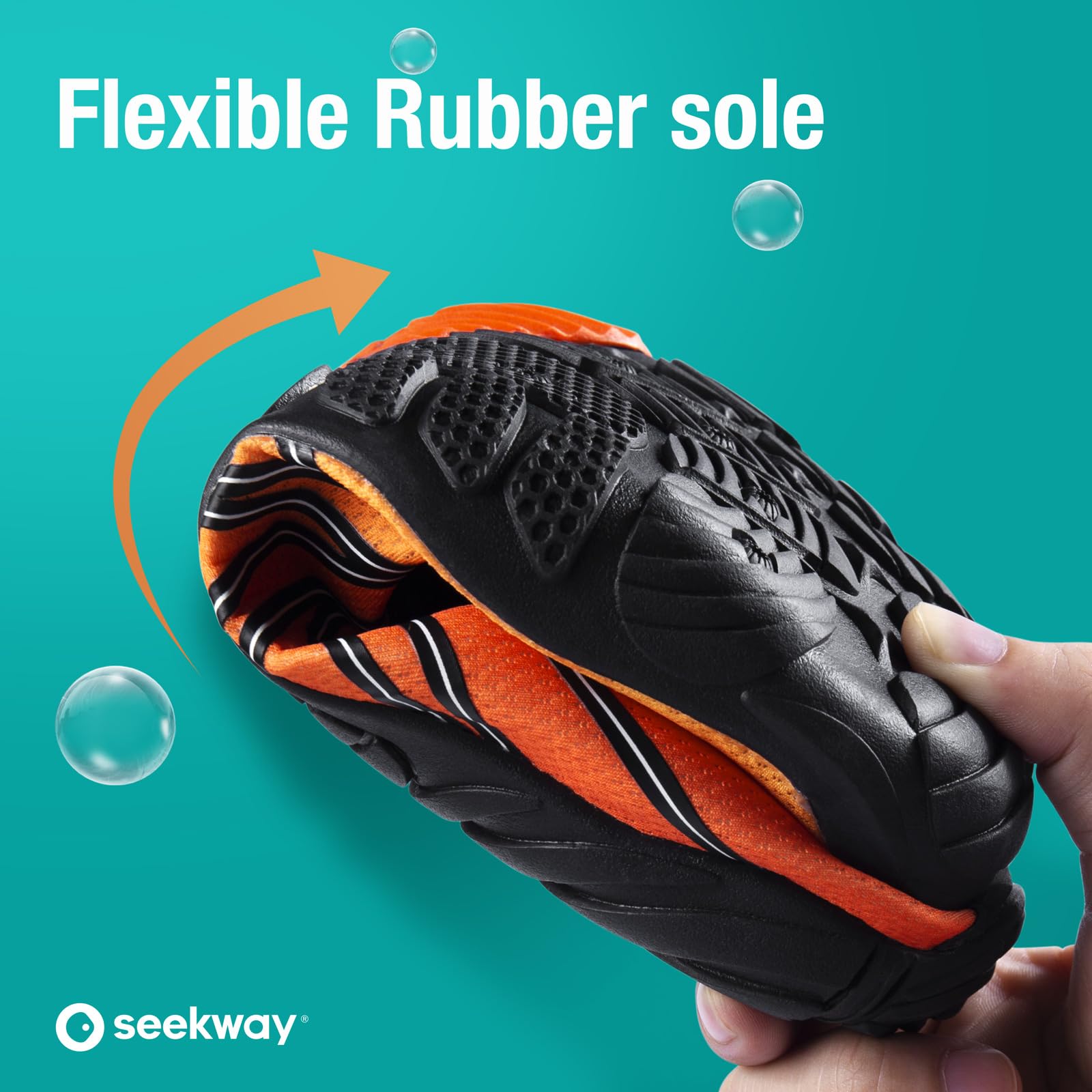All-round Protection:Thick rubber soles and a toe cap keep your feet completely protected from sharp objects and provide great cushioning. The 3D non-slip treads provide exceptional grip even in slippery conditions. This makes it a great choice for outdoor sports.