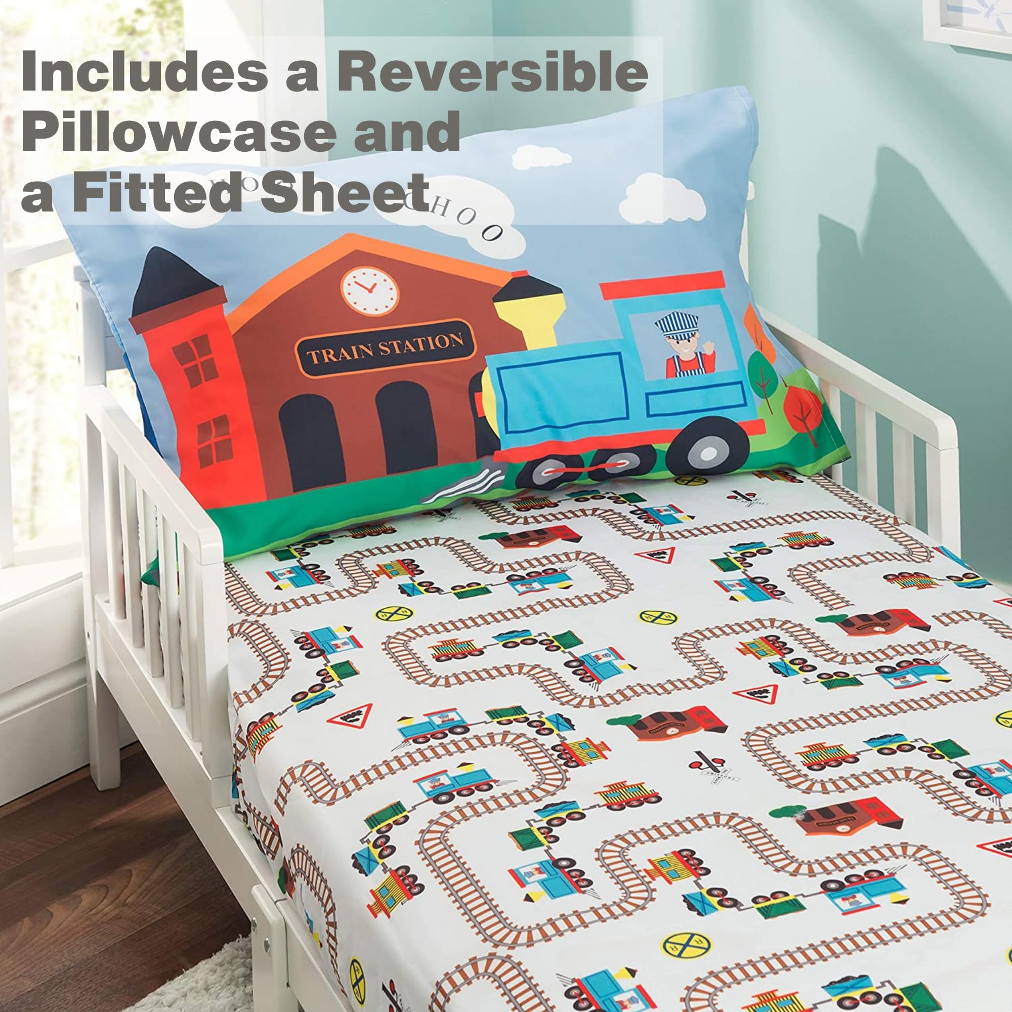 PERFECT FIT – This set includes a fitted sheet (52" by 28") and a pillowcase (30" by 20"). The fitted sheet is made to fit a standard size (52” by 28”) toddler mattress or crib with an 8” pocket. We have tested it on a ton of crib/toddler mattresses so you don’t have too.