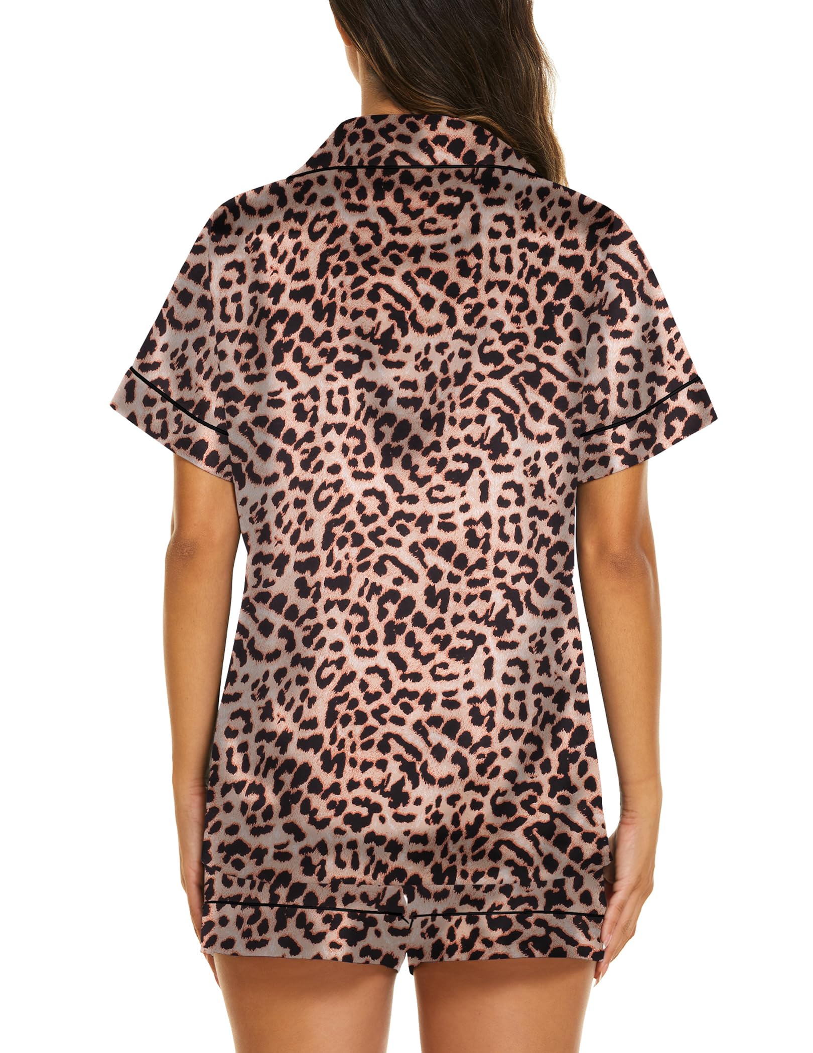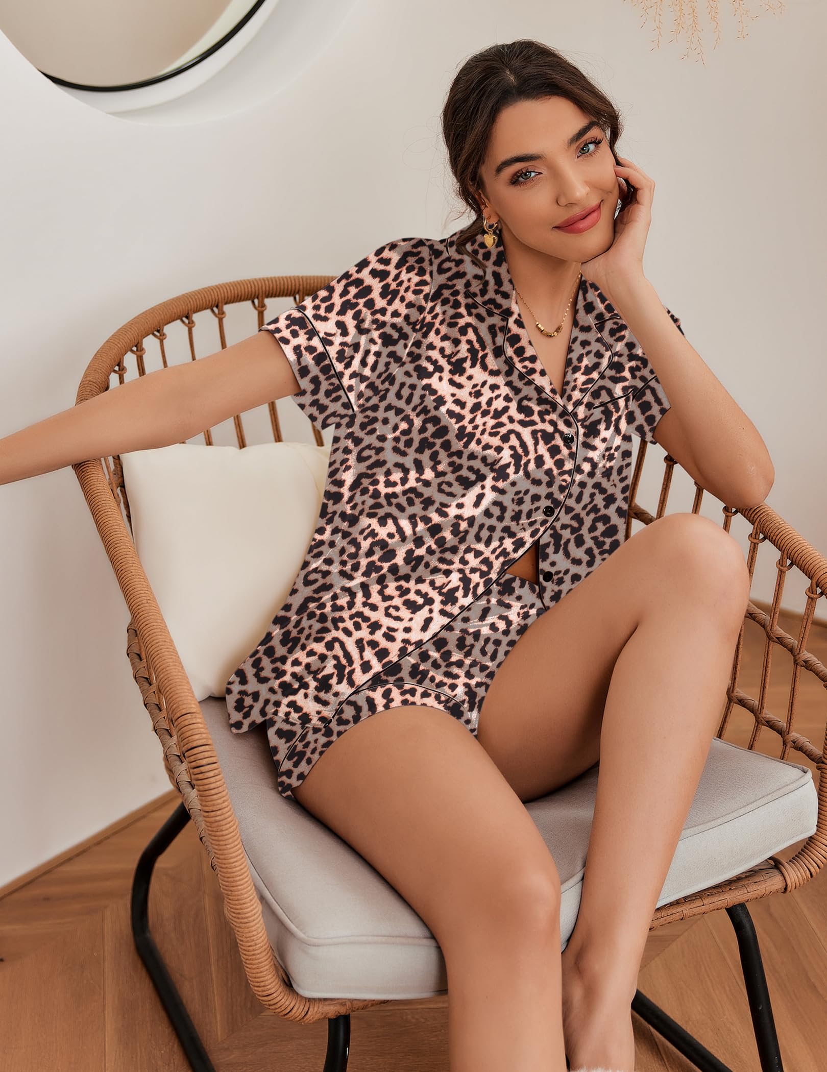 Elegant design:Short sleeve pajama tops, button down front,notch lapel collar and one chest pocket.Matching pajama shorts for women with stretchy elastic waist that fits for any body size.Lightweight and Breathable,perfect for sleeping, lounging, or morning coffee in effortless grace