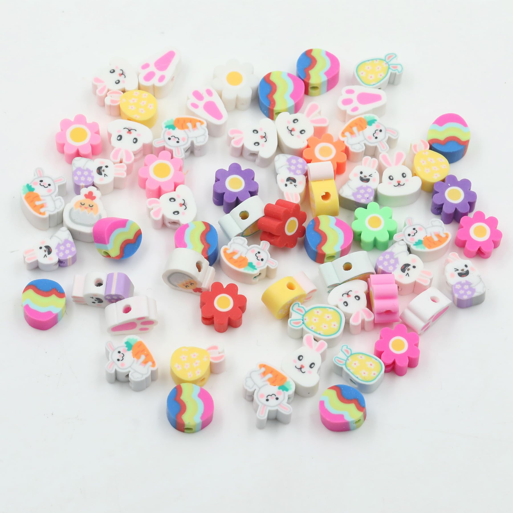Fun DIY - These soft clay beads come in an assortment of colorful Easter-themed shapes such as flowers, bunnies, eggs, and cakes, making them a perfect addition to your seasonal crafts and jewelry projects.