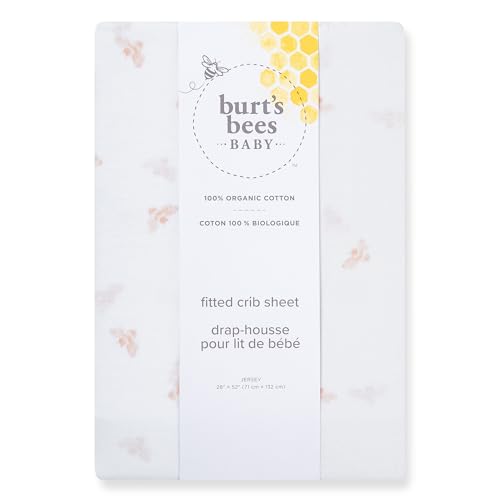 Embrace the comfort of the Burt's Bees Baby Fitted Crib Sheet, a nursery and baby registry gift essential. Crafted with care from 100% organic GOTS-certified* cotton, this sheet is a sanctuary of comfort for your baby's delicate skin. Combed and ring-sun, these sheets are super soft, durable, and breathable, promoting restful sleep for your baby. Our BeeSnug 360 design ensures a snug fit for standard cribs and toddler mattresses, making it a versatile choice for any nursery. These easy-care, machine-washable sheets get softer with every wash while the patterns remain vibrant. Available in a variety of adorable hand painted watercolor prints suitable for baby boys and baby girls, our sheets not only complement your nursery décor but also serve as a cherished essential for any parent. From floral patterns to animal and geometric patterns, you can mix and match to find the perfect crib sheet to match your nursery theme. Our classic jersey knit fabric gives your little bee the same feeling you get when you slip into your favorite t-shirt. It is warmer to the touch than woven sheets, providing a smoother transition from snuggling in your arms to safely sleeping in their crib. *GOTS Certified by CU 831717