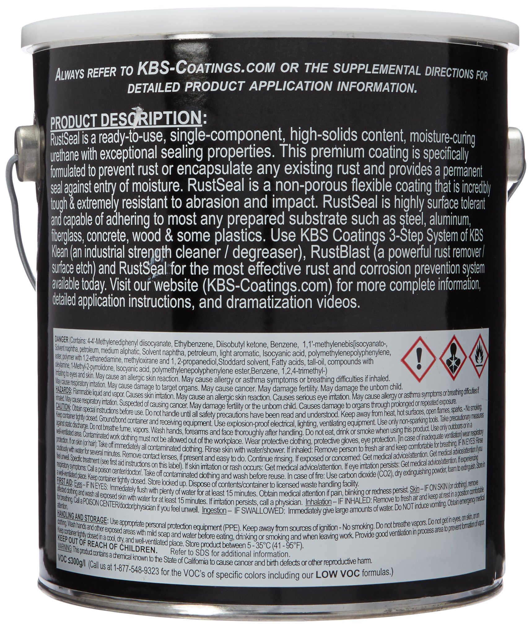 RustSeal is an incredible, single-component, ready-to-use, high solids content, rust preventive coating and stop rust paint with insane sealing and covering properties. No other brand is tougher on rust than KBS Coatings! Using premium quality materials and advanced color formulations, RustSeal is a high tech performance coating that is the present-day answer for 21st century rust protection and rust prevention. RustSeal is the most permanent low cost solution for stopping rust and corrosion anyplace where rust is a problem: Home, Automotive, Industry, Fleet, Farm & more! Unlike other corrosion treatments, RustSeal is an enhancement that lasts. Water and air are locked out, therefore oxidation, the precursor to rust, cannot take hold. RustSeal simply is technology that’s unbeatable! Satisfaction !