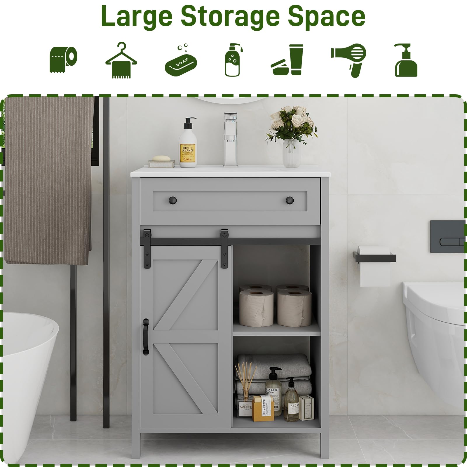 【Durable and Water-resistant Bathroom Vanity】: This bathroom vanity is crafted from high-quality wood and premium metal hardware, ensuring a sturdy and durable structure that stands the test of time. The exterior features a water-resistant finish, making it highly practical for the bathroom environment.