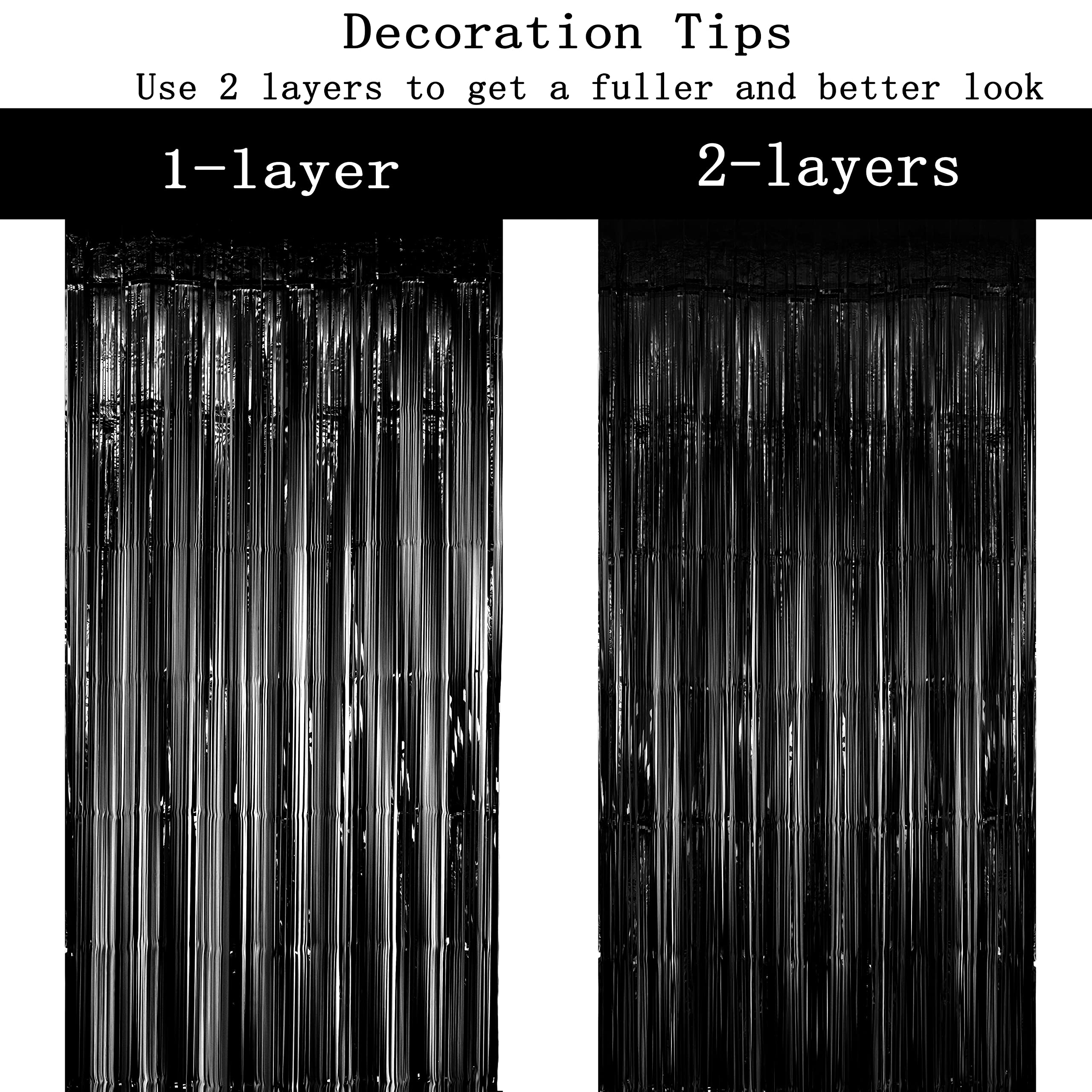 Black Foil Fringe Curtain Backdrop Decorations coordinate with balloons, tassels, pom poms, garlands, banners and confetti would be much great for your party