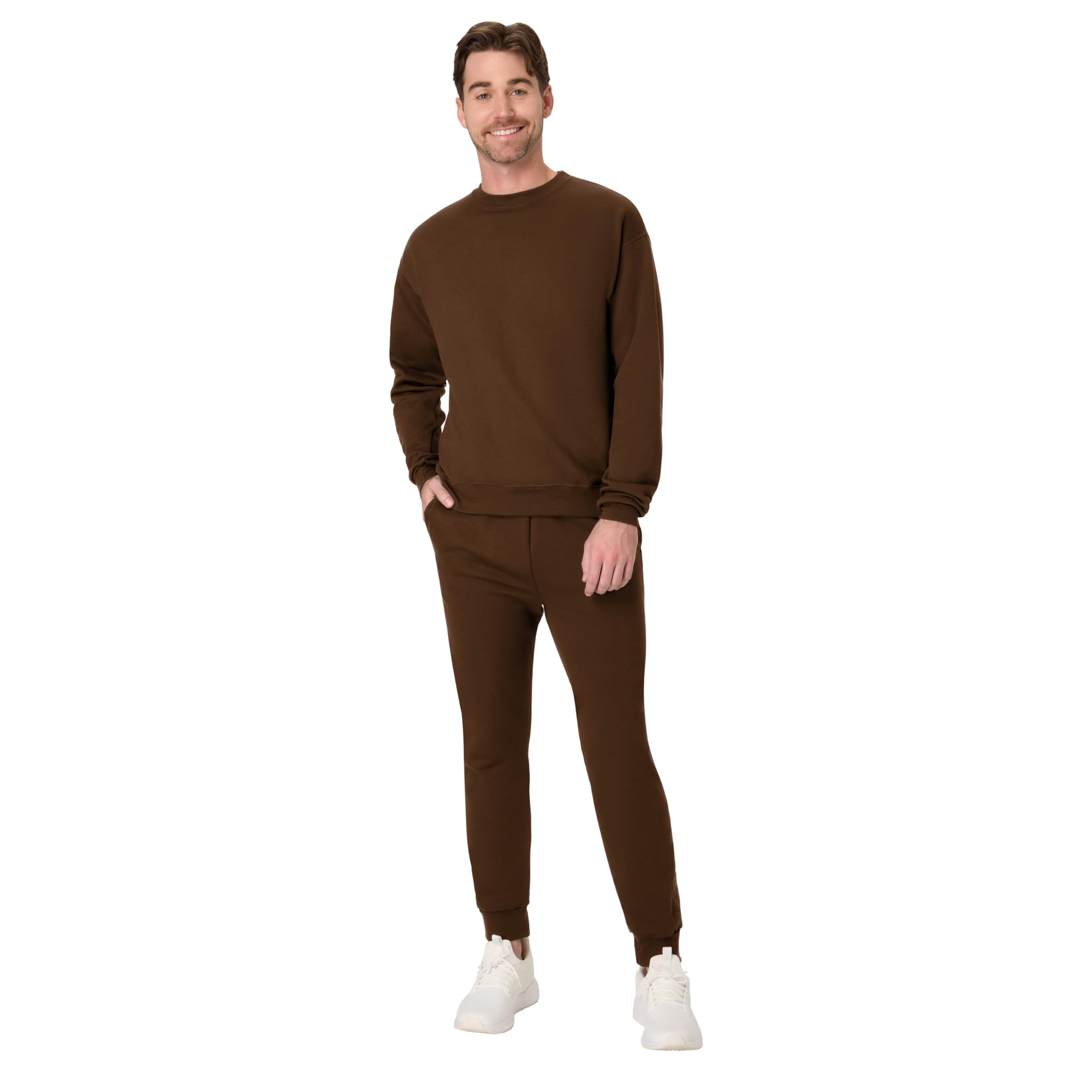 Description Just-right men's joggers let you take leisure seriously while staying versatile. Hanesยฎ EcoSmartโข mid-weight, year-round fleece sweats are made with cotton sourced from American farms, so you can feel good about your choice. Thick fleece is made with a quality cotton/polyester blend that stays warm and cozy, so jogger pants can be a longtime favorite. Whether you're kicking back or warming up for game day, these comfortable sweatpants for men have a relaxed, athletic fit that gets the job done. Side-seam pockets and single back pocket hold essentials, freeing up your hands. Throw these men's sweatpants in the washer on laundry day for easy care. Use cold water wash to reduce energy use. Love this men's activewear? Grab one in every color to maximize your style options.