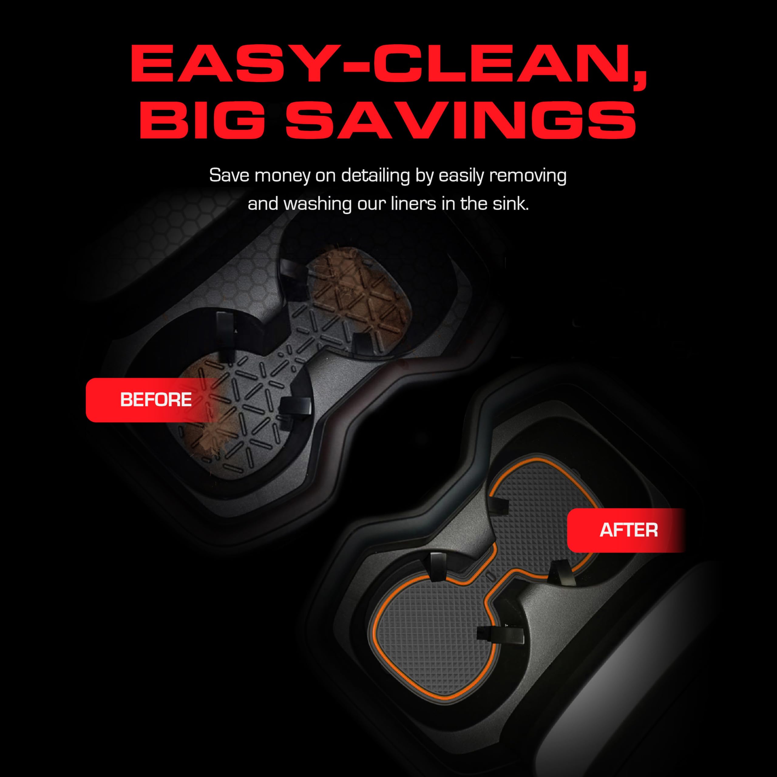 Save Time & Money - interior car washes and detailing are expensive. With our Toyota accessory cup holder liners you can keep your car looking new & clean! The non-slip bottom clings to your cupholders and console areas so they stay in place and the built in handle makes for easy removal and cleaning