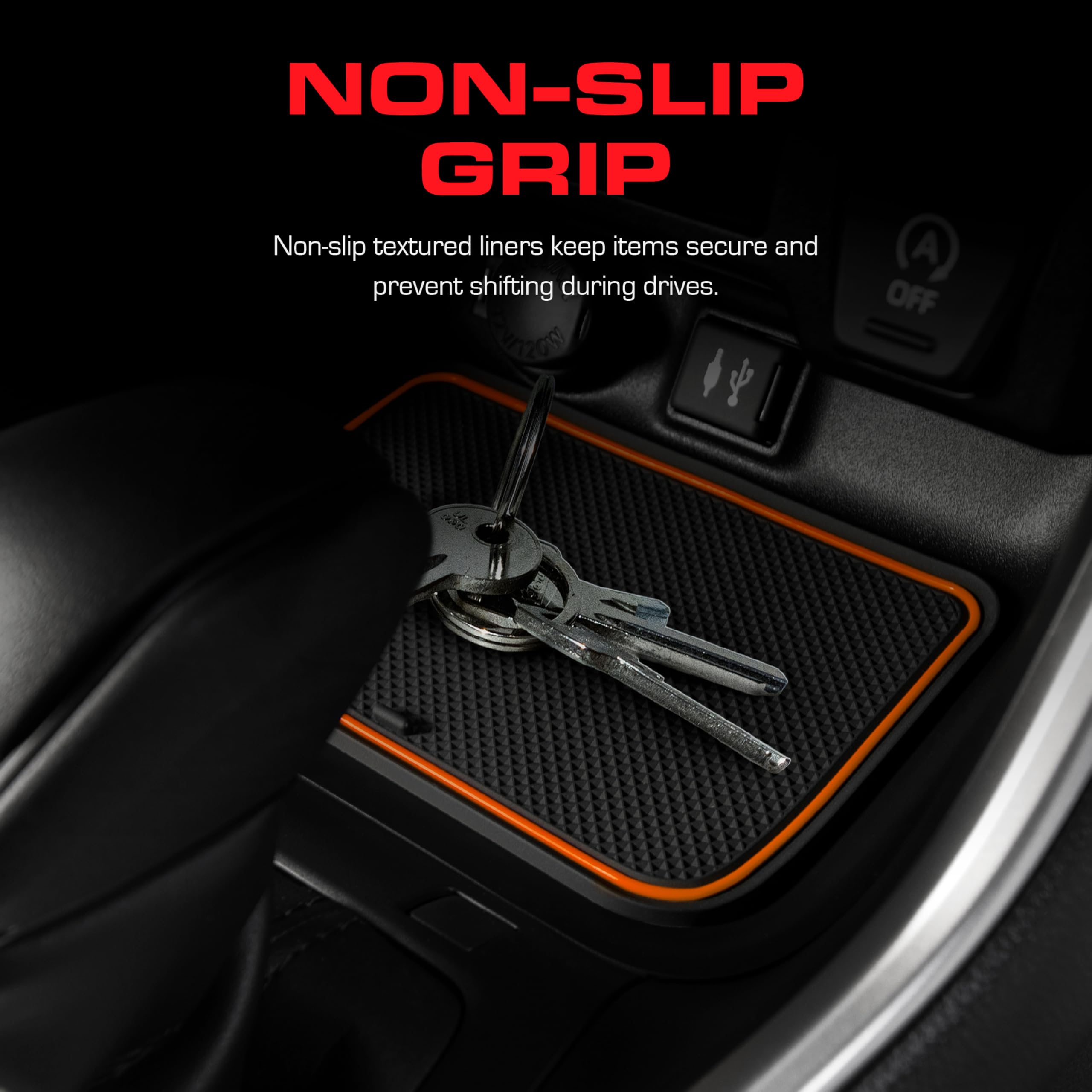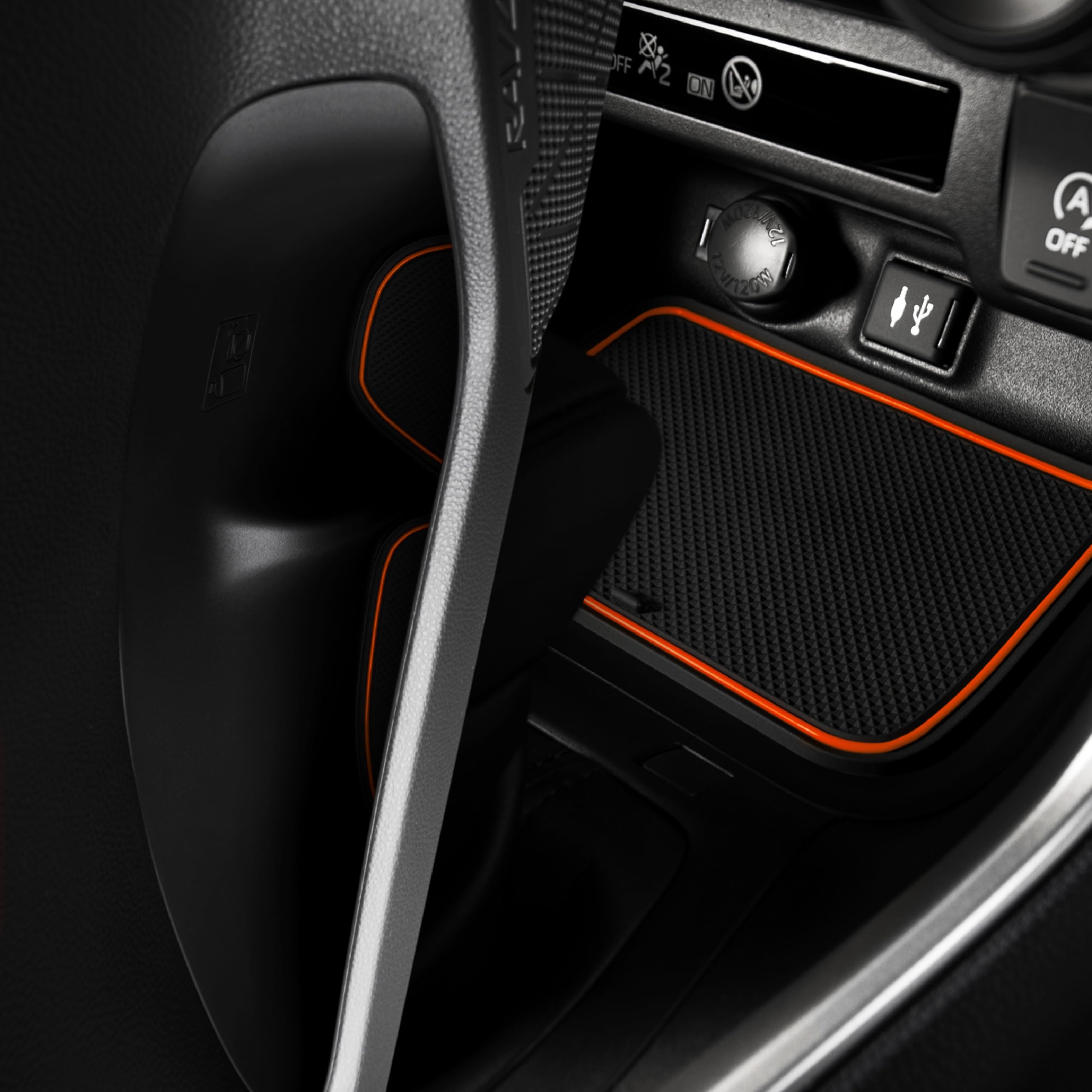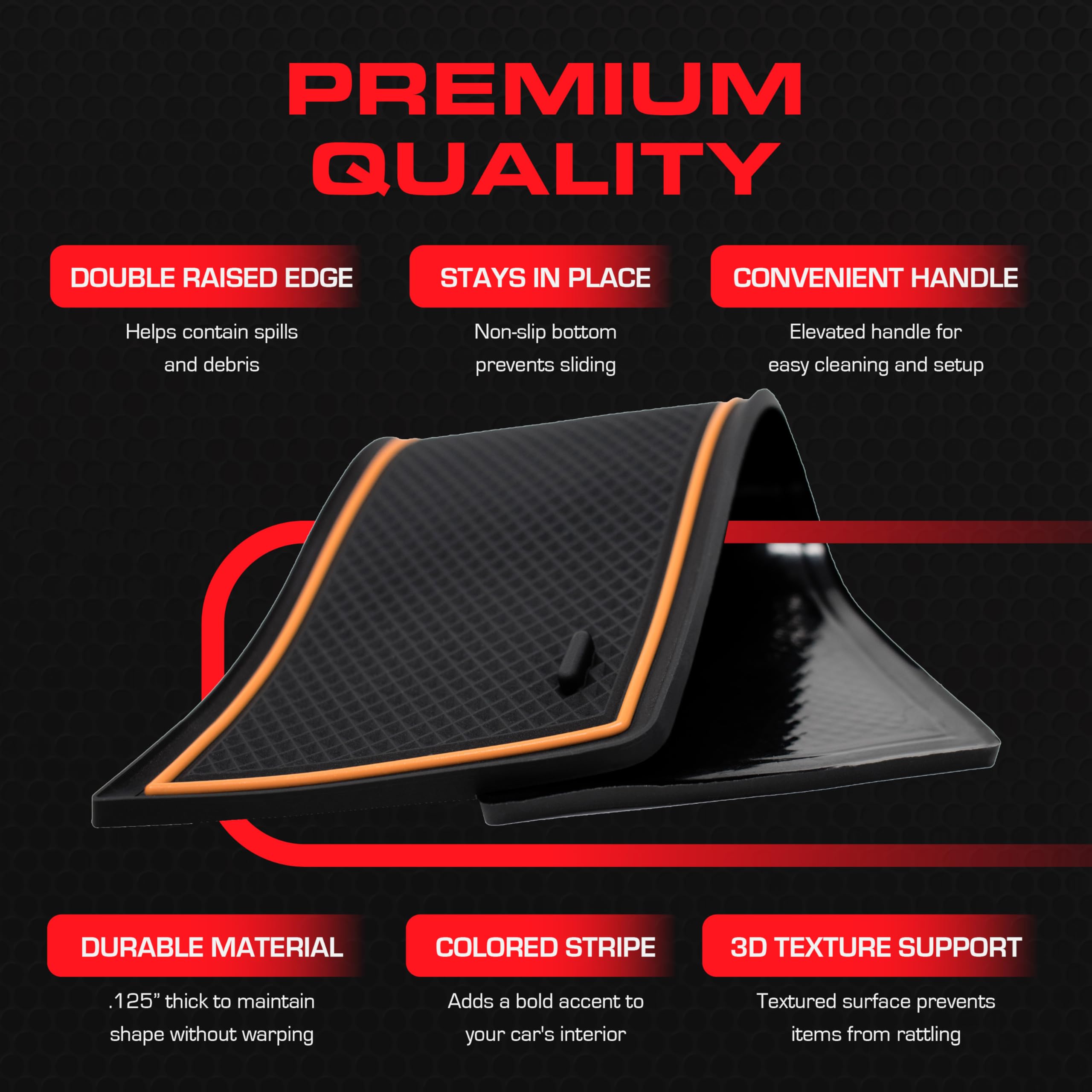 RAV4 Compatible Accessories that keep your car looking new - Our custom car interior liners for RAV4 and cup holder mats are engineered in the USA with a unique design that offers a precise fit you won't find elsewhere, perfectly placed tab handles for easy removal, a sleek mods look without logo designs that gather grime, and a patented all-weather material that withstands heat up to 170 degrees without the “rubber tire” smell