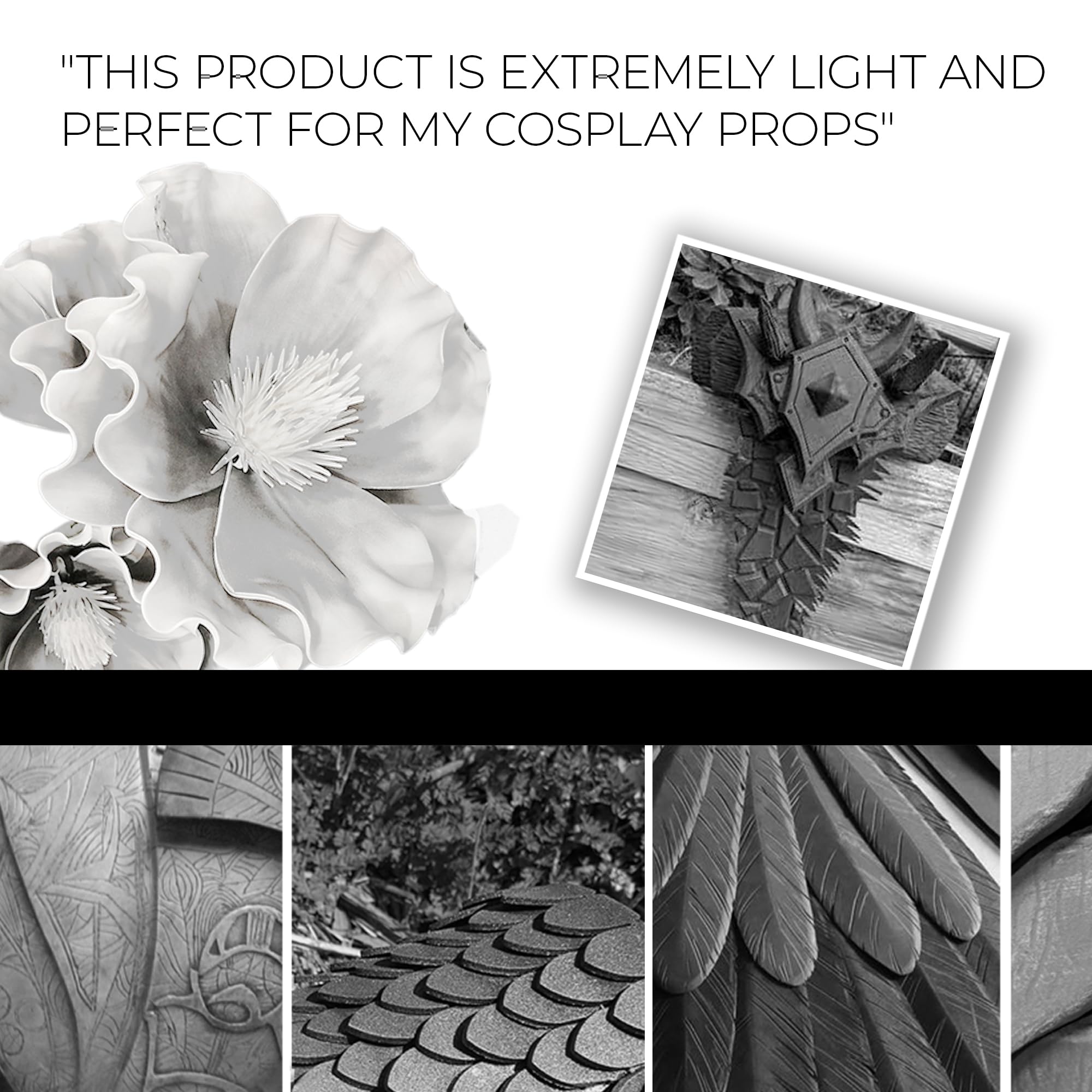 Air Dry Foam Clay - Air dries within 24-48 hours, does not lose it's flexibility after drying, instead it maintains it's shape, and is a very versatile cosplay foam perfect for various cosplay projects.