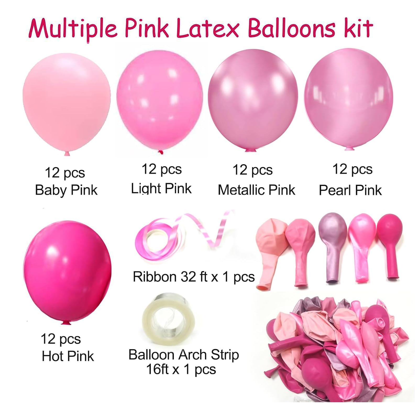 γAll-in-One Kitγ: This deep light pastel pink balloons kit includes everything you need to create a stunning decoration, metallic chrome pink balloons 12pcs, macaron pink balloons 12pcs, pink balloons 12pcs, light pink balloons 12pcs, pearl pink balloons 12pcs, pink ribbons and balloon strap. The size of the balloon is about 12 inches after inflation. The synergy of pink balloon can make any party or occasion more elegant.